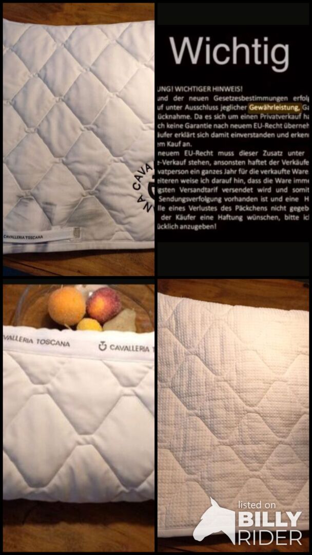 The saddle pad only has the usual discoloration in the saddle area according to the photos. Otherwise the saddle pad is in top condition! NP was 150 €.