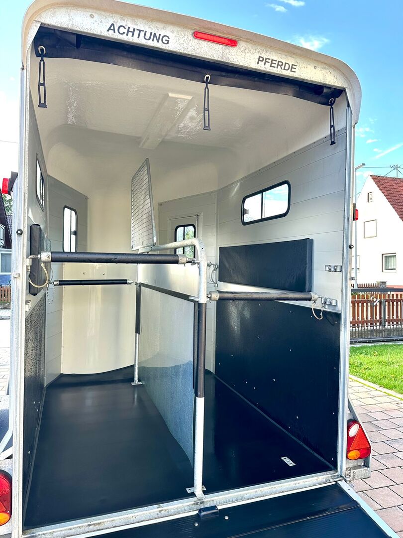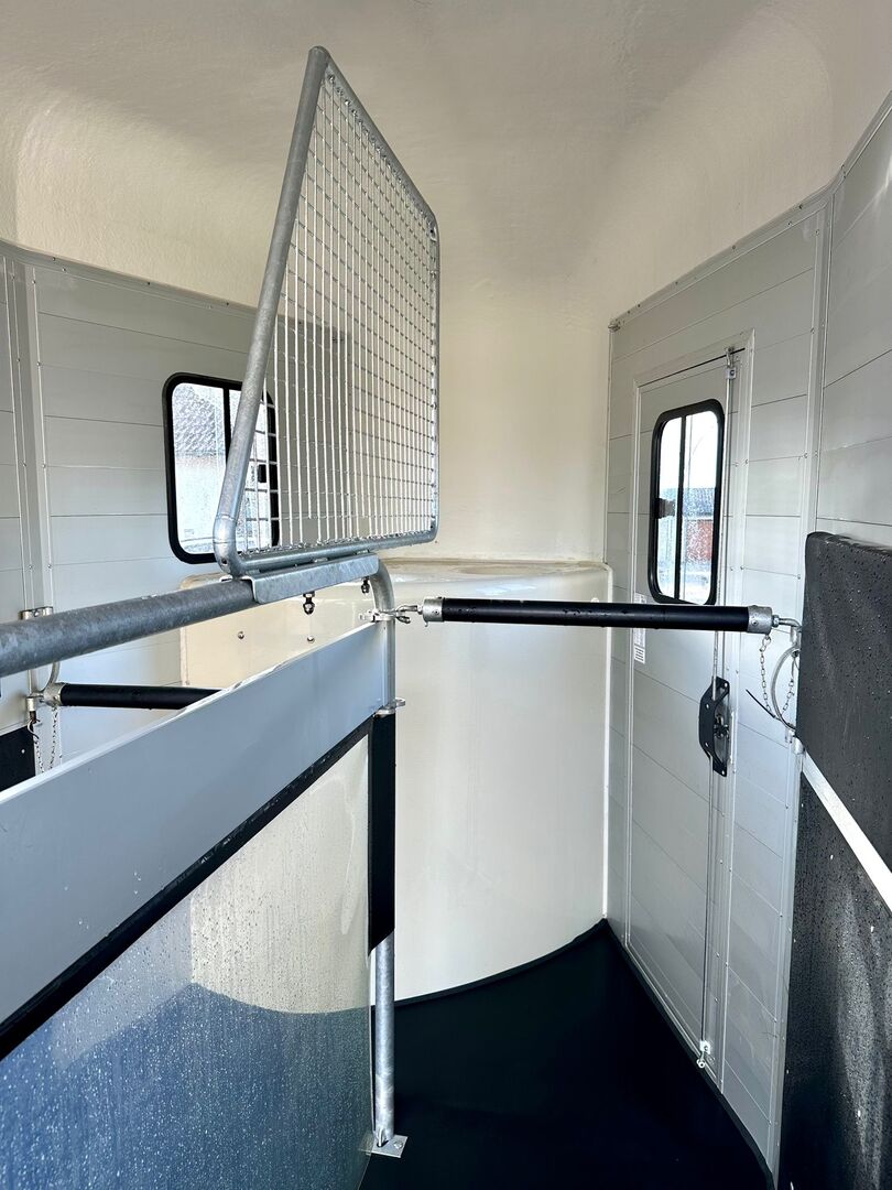 - First registration 07/2019 - Unladen weight 850 kg - Permissible total weight 2600 kg - Max. drawbar load 150 kg - Next HU 02/2026 - Head separation - Large access door - Large saddle compartment Jumping lockable - Automatic jockey wheel - Net roller blind - Ramp-door combination - Sliding windows on both sides for good air circulation - ALU FLOOR - Rubber floor - PVC partition wall completely removable with swivel bar - Pony compensation - step protection - Side cushions - Pullman chassis with shock absorbers for 100 km/h approval - independent suspension - Aluminum rims - External tie rod