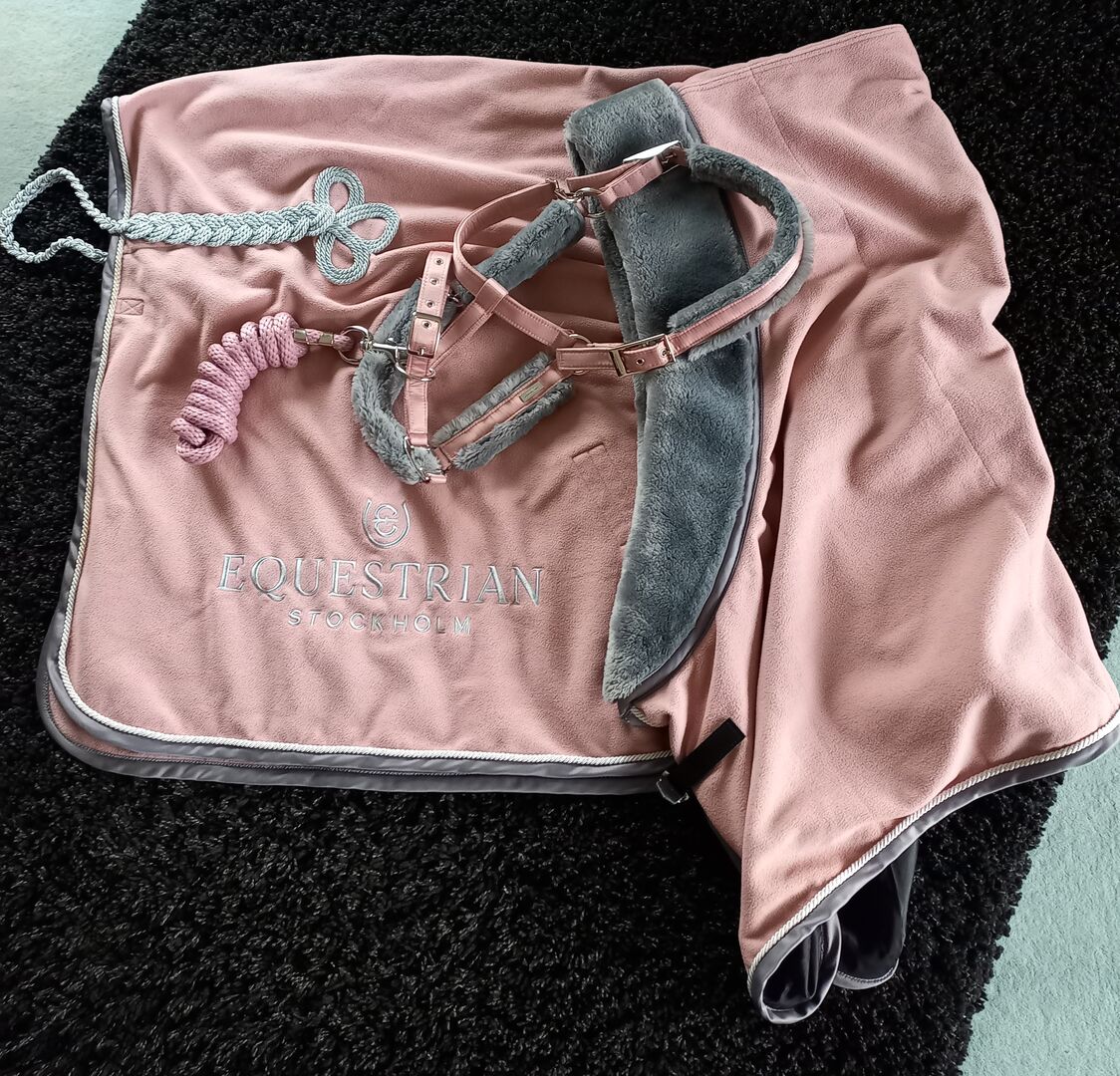 ⭐️Equestrian Stockholm/NEW set blanket + Halfter⭐️ - NEW set of the brand Equestrian Stockholm, consisting of a sweat rug and halter with lead rope. In a beautiful warm shade of pink with faux fur in a medium shade of gray. Used 1 x for photos, therefore absolutely NEW! Preferably to be sold as a set; individual sale possible.