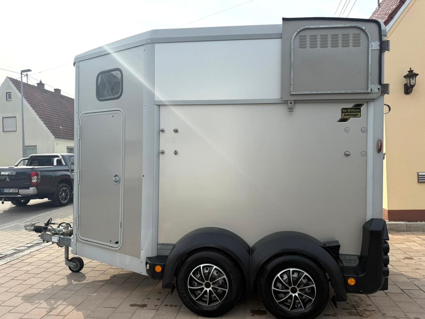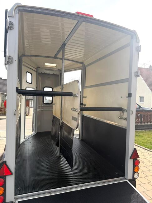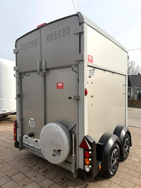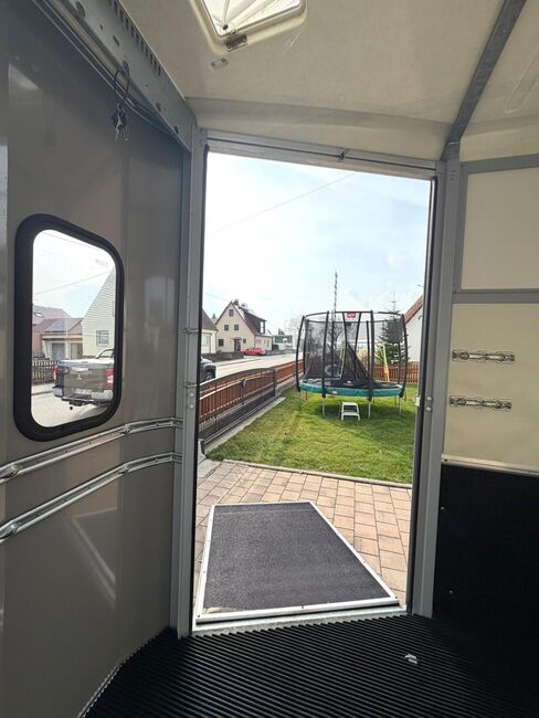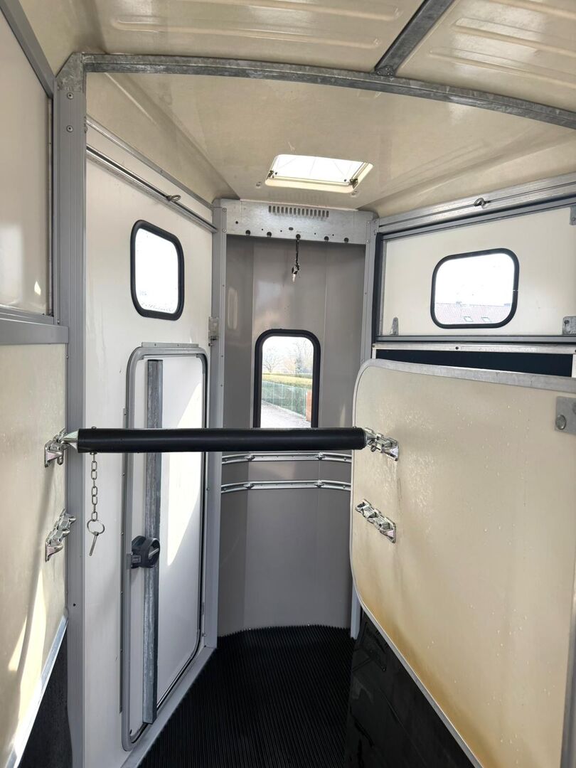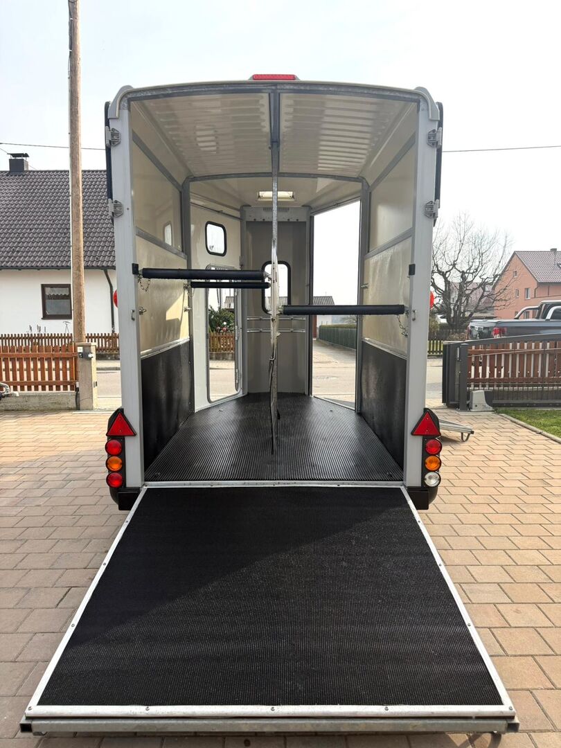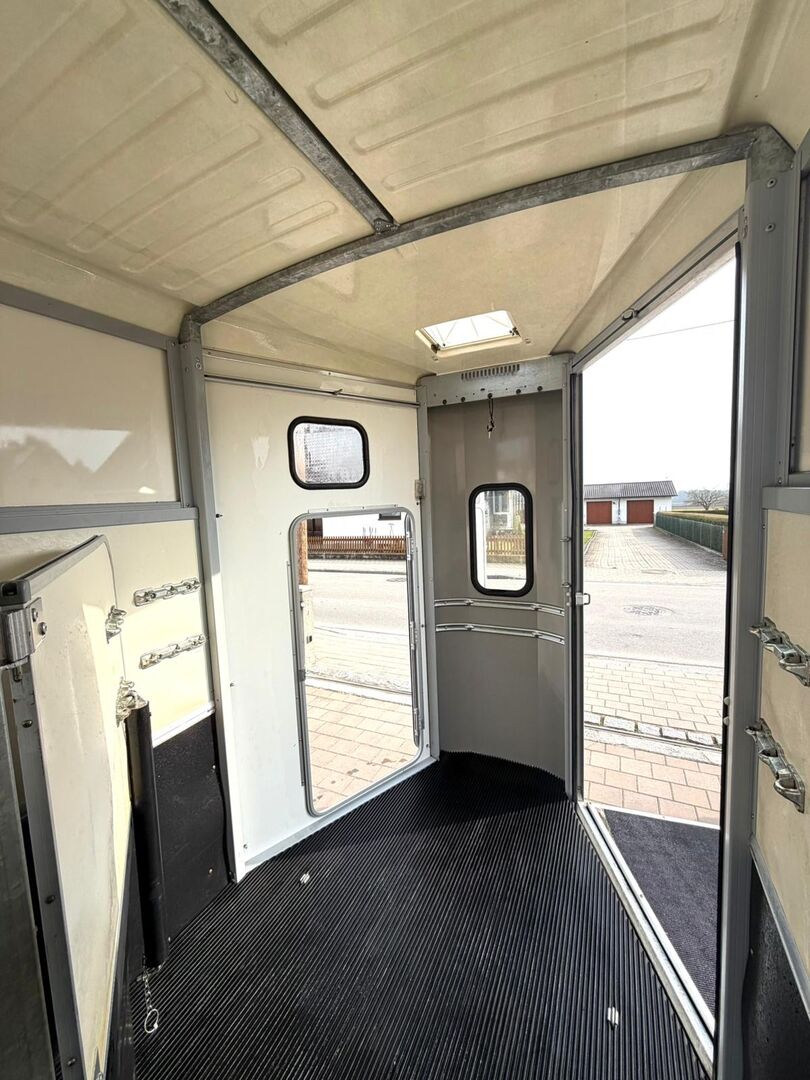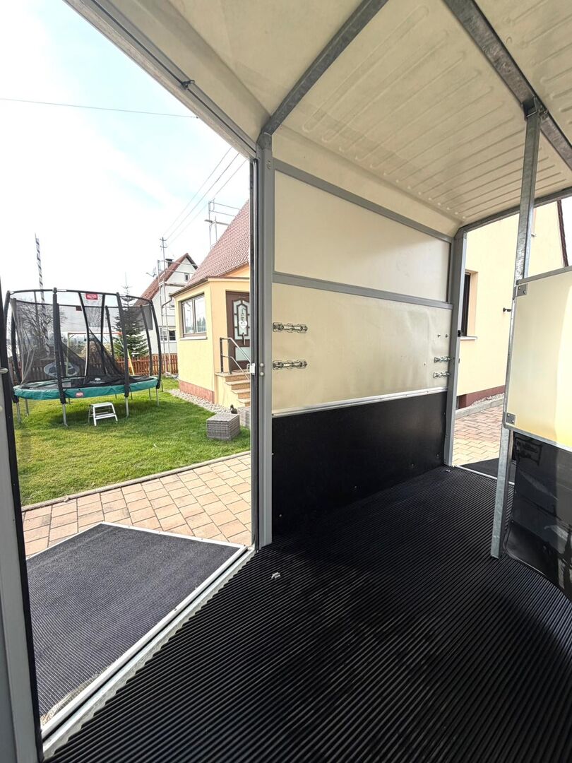 - First registration 04/2015 - Unladen weight 930 kg - Permissible total weight 2600 kg - Max. drawbar load 150 kg - HU until April 2027 - Chassis with shock absorbers for 100 km/h approval - Tires from 2024 - Front exit - Front window - Roof hatch - PVC partition wall completely removable with adjustable swivel beam - Pony equalizer - ALU FLOOR - Rubber floor - Folding window at the rear - Folding window at the front exit