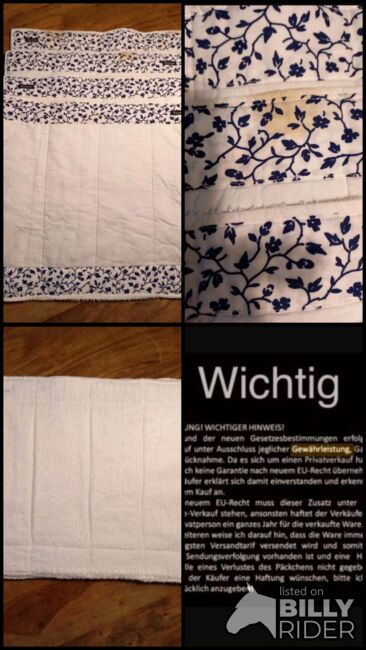 ⭐️Lacrox⭐️4er Set of bandaging pads - Very neat set of 4 Lacrox brand bandaging pads in white with floral pattern in blue/navy. They are all 4 the same size: 38 cm high, 43 cm wide. The insides are made of absorbent terry cloth.