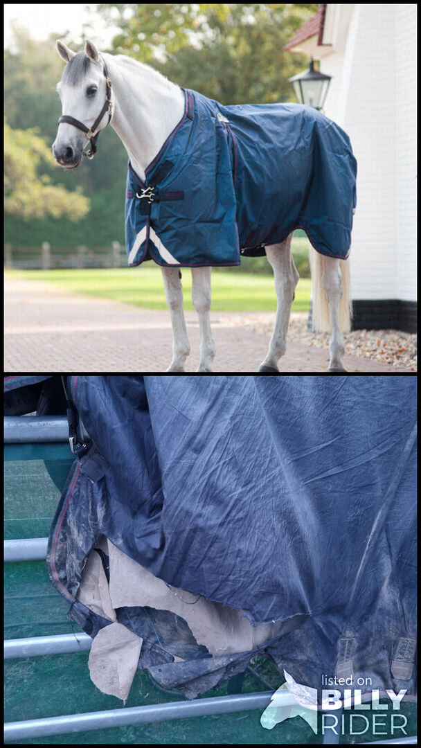 My pony suffers from ataxia and unfortunately got caught in the lining on the left side so that the fabric is torn. I am selling the rug as he unfortunately doesn't get on so well with the length of the legs due to his condition. Otherwise, the blanket is in perfect condition. Due to the torn inner fabric, I am offering the blanket here very cheaply :-)