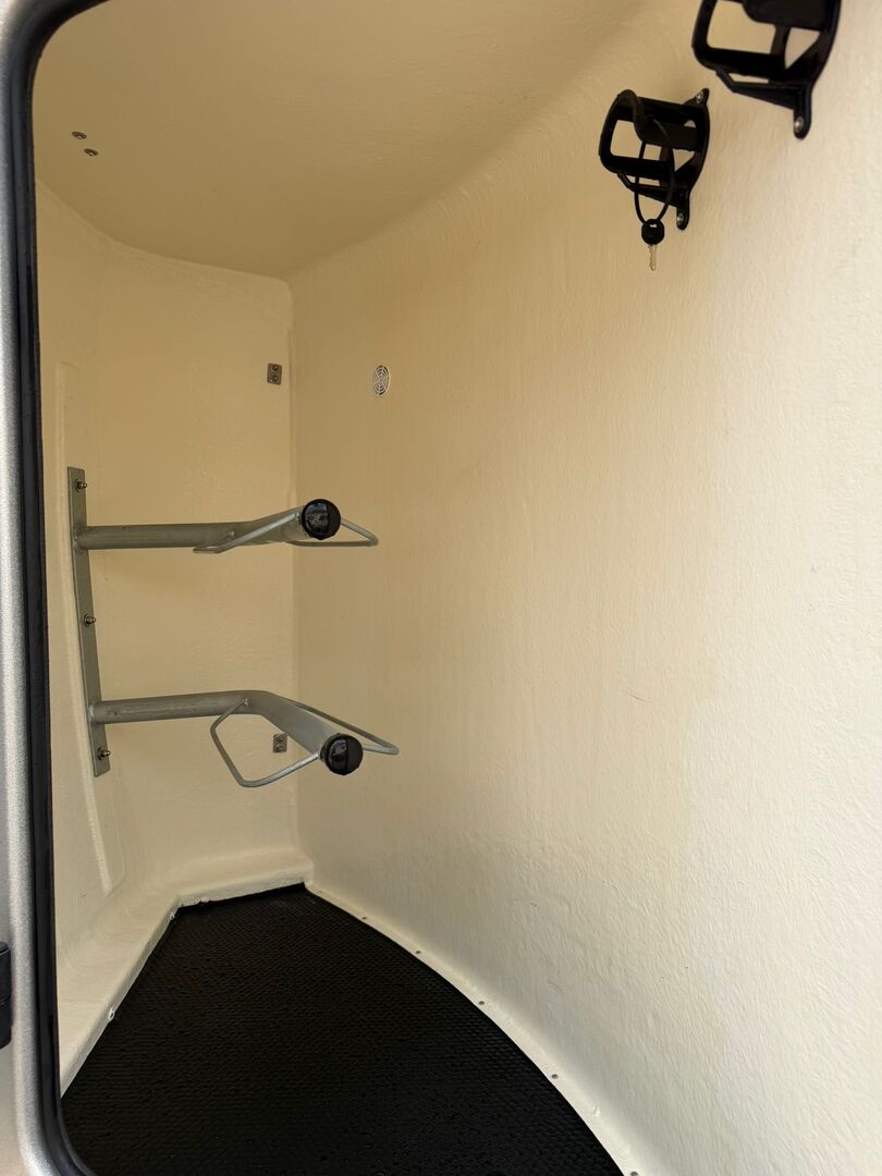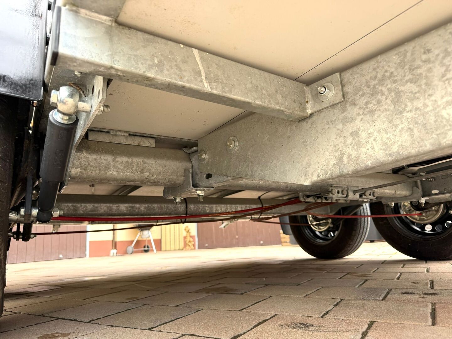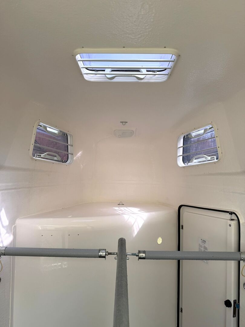 - First registration 07/2017 - Unladen weight 736 kg - Permissible total weight 2400 kg - Max. drawbar load 100 kg - HU until July 2027 - Automatic jockey wheel - Opening tinted windows - Panic system - Loading aid - tarpaulin lift / net lift - Dirt trap - Lockable tack room with pull-out saddle holders and brushes - ALUPLAST FLOOR - Rubber floor glued and sealed - PVC partition wall completely removable and adjustable with swivel bar - Pony compensation front and rear - step protection - side padding - Integrated feed trough - hay net holder - interior lighting - roof hatch