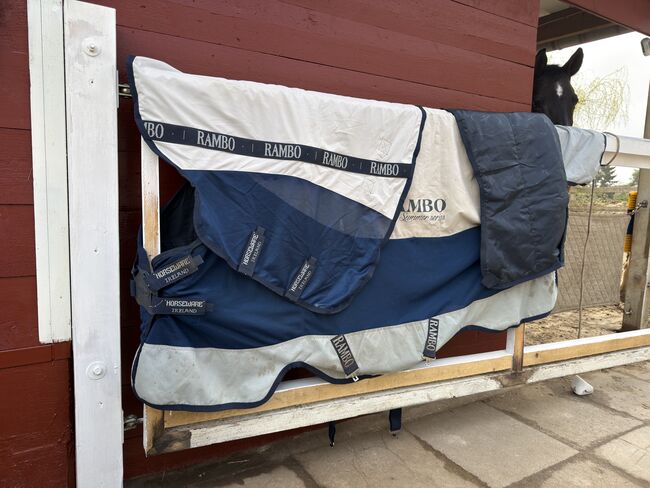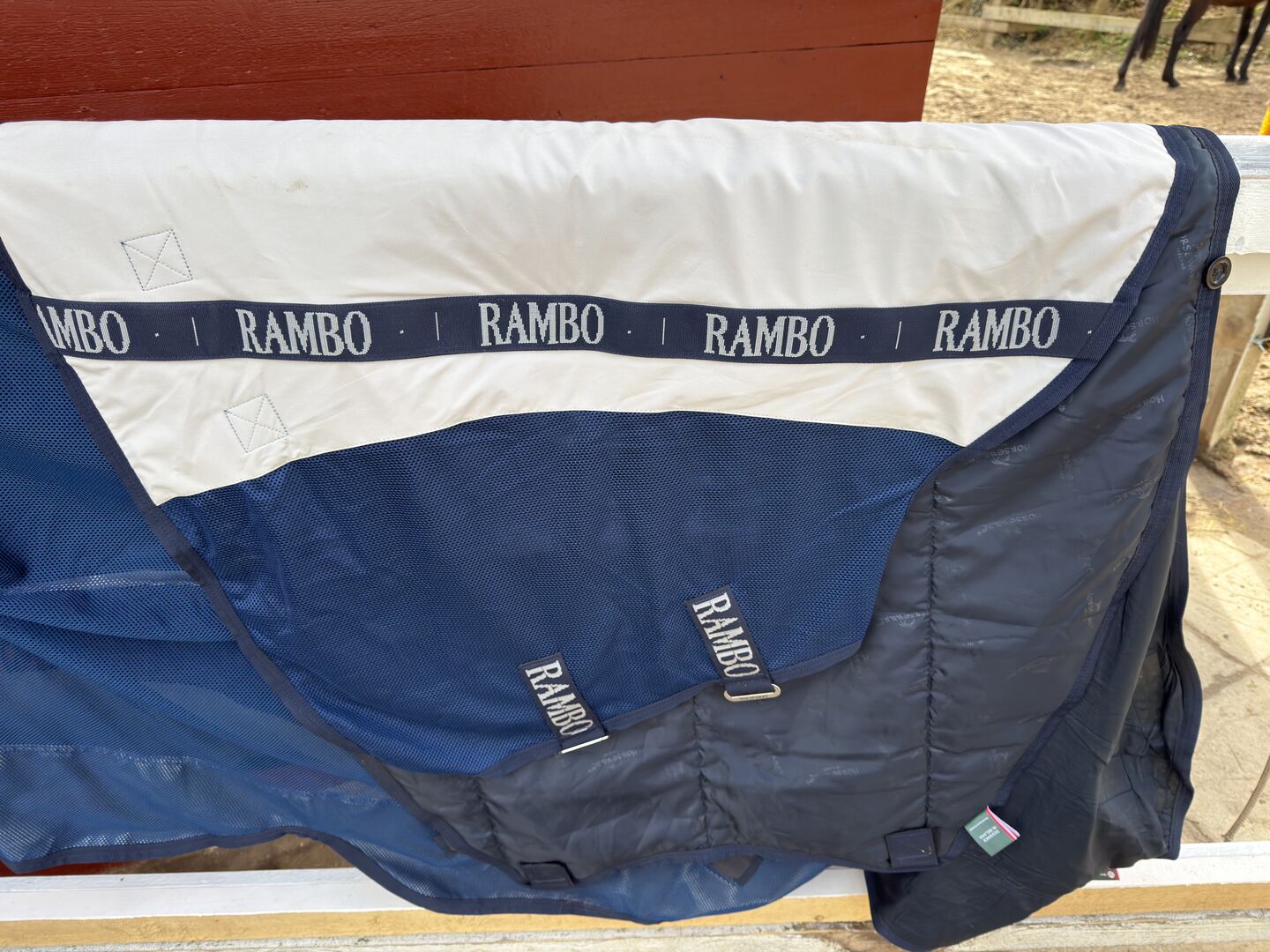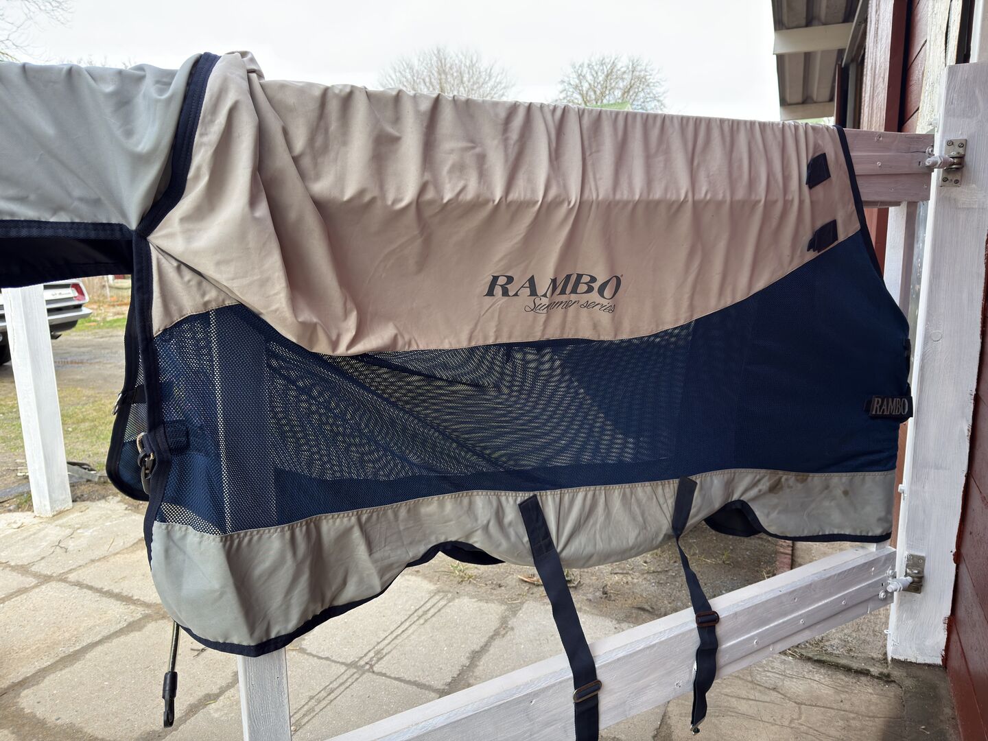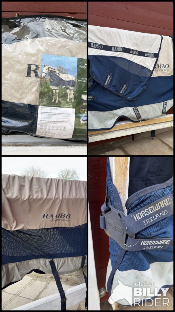 130cm Horseware Rambo Summer Series Fly Rug Rain Rug - See pictures for condition With neck part and 100g liner Shipping also possible for a fee. This is a private sale. The sale takes place under exclusion of any liability for material defects. A return, guarantee or warranty is excluded. The buyer expressly agrees to this.