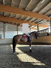 She is a sensitive, fine, approx. 1.69 m tall mare with three very nice gaits, expression and a pleasant forward movement. She has a bit of go, but always remains manageable and honest - she is not a horse that puts you down or is unfair. Nevertheless, she is not a beginner's horse, but more suitable for an experienced person at A or L level who no longer has any competition ambitions, but enjoys fine, gymnastic work and genuine partnership.