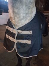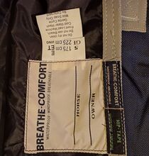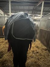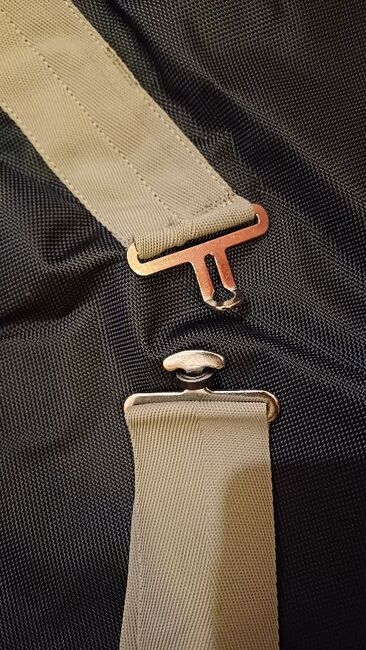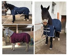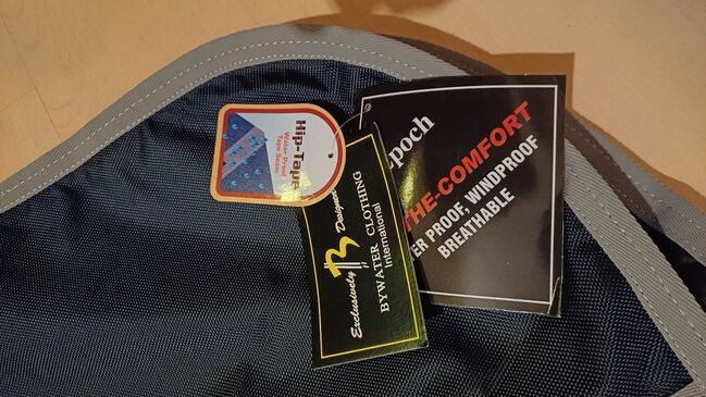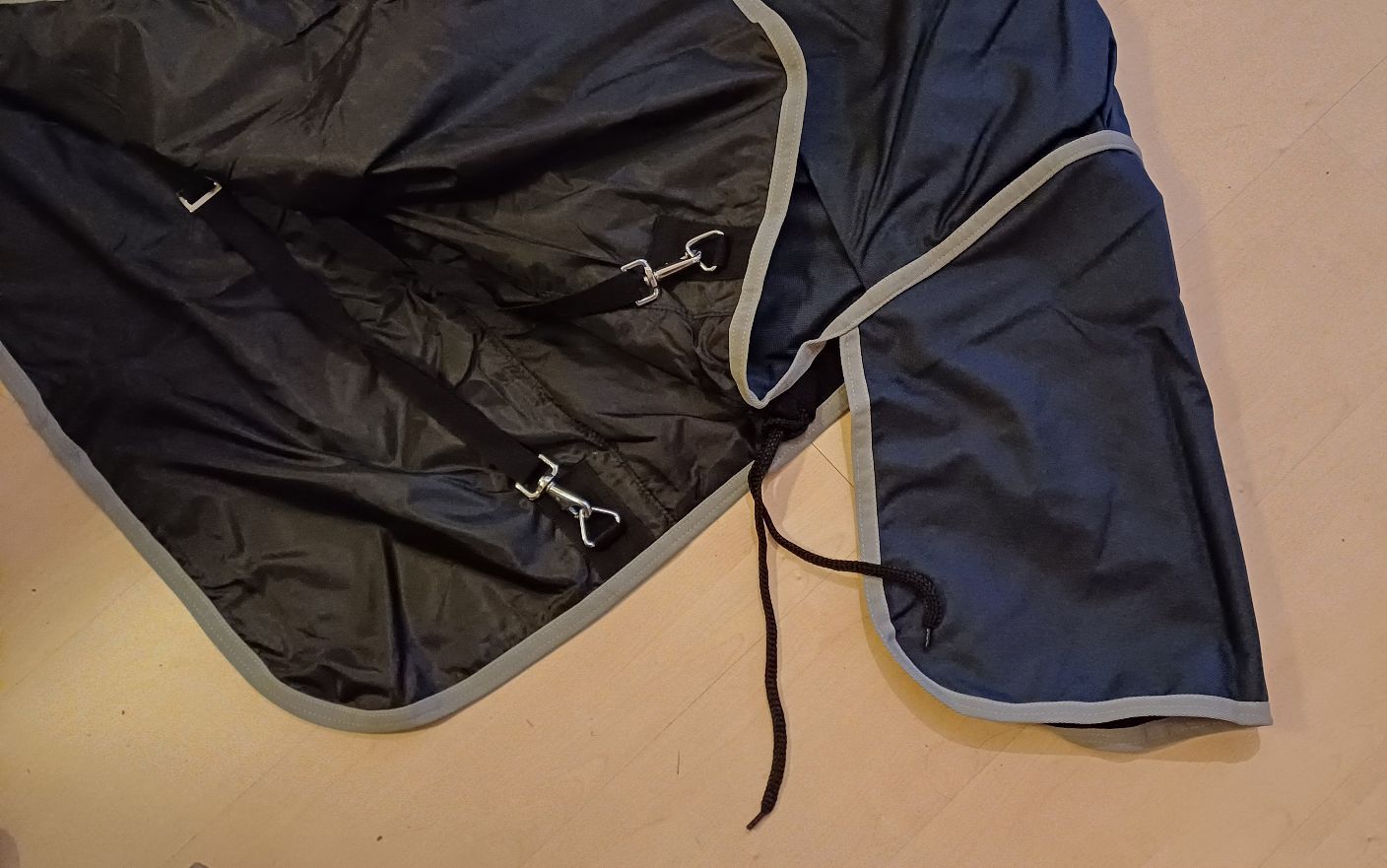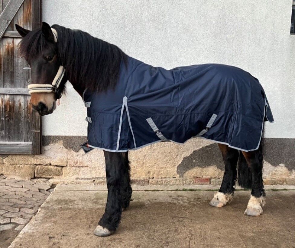 BTS 1680D PES rain winter rug with 50g, uv stable, 5000mm water column EPOCH special fabric Breathable from -20° to + 45° according to the manufacturer (see label) welded seams, underside made of fur-friendly PES, 100% waterproof, 100% windproof, double chest closure with protective Velcro to prevent unintentional opening, quick opening with carabiner, gusset, Cross surcingles with rubber ring to prevent unintentional opening, tail cord, looped detachable leg straps with carabiner, deep tail flap, Neck circumference 151cm, 105cm side depth, Rug can be personalized (label to add name), weight approx. 4kg for RL 175cm Blanket with carrying bag, Machine washable. Luxury goods at a low price.
