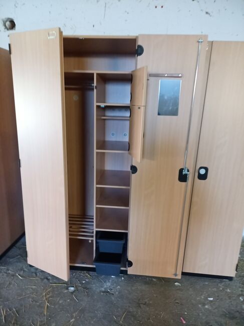 2 beech-colored army lockers 95x60x200 - Beech-colored saddle lockers federal army lockers 96x60x200 Complete with all accessories Partly still foil on mirror Look like new Metal horse included free of charge to beautify the cabinet Self collection