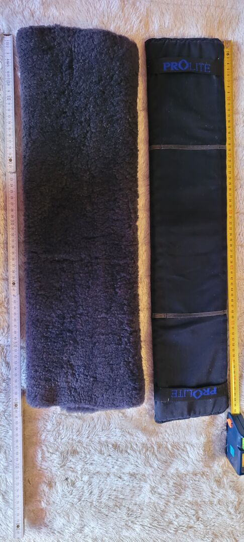 2 girth covers - I offer here 2 used girth covers: Lambskin (gray) L:60cm, W:18cm PROLITE: L:65cm, W:12,5cm