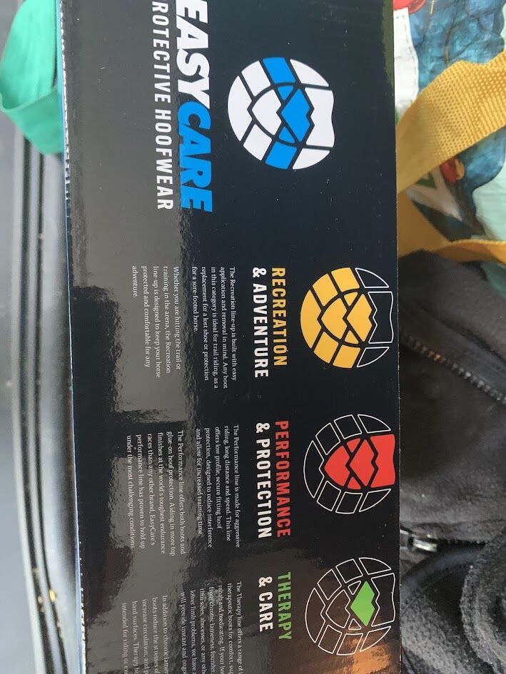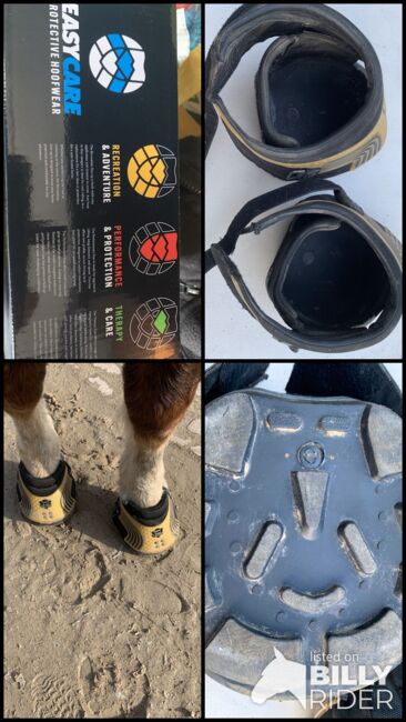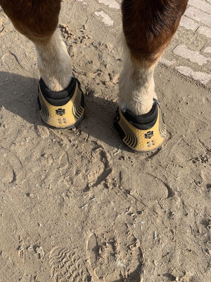 2 pieces Easyboot New Trail size 12 - cold blood - - Hello I offer the Easyboot New Trail size 12 for cold blooded horses. I only sell in pairs. My Schleswiger lost his shoe and the other one came off out of necessity. I spontaneously bought these hoof boots in March 26. They were only worn for a few days, but after the hoof trimming it turned out that the shape didn't fit. The hoof boots are therefore in perfect condition (worn with an insole pad) but the sole on the front of the toe has slipped a little. I bought them for €340 and am selling them for €100 less because of the front sole. In the cover picture they are new. One photo is of the box, which my husband unfortunately disposed of with the invoice.