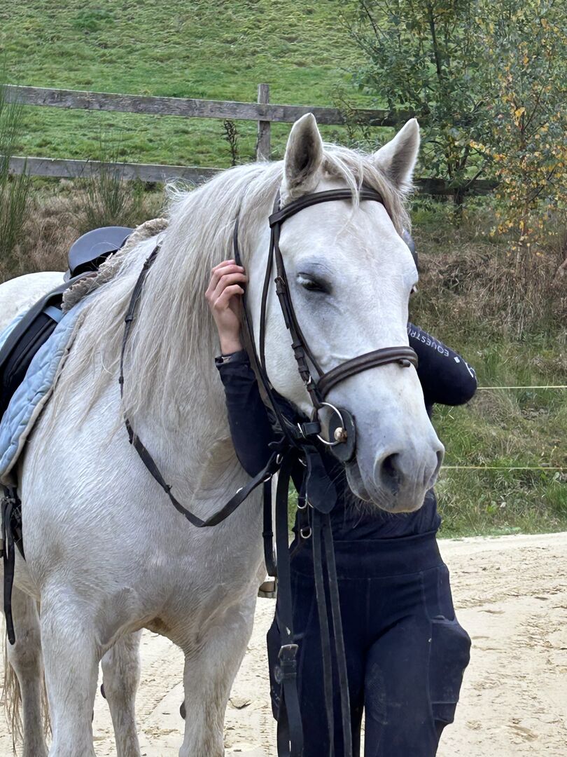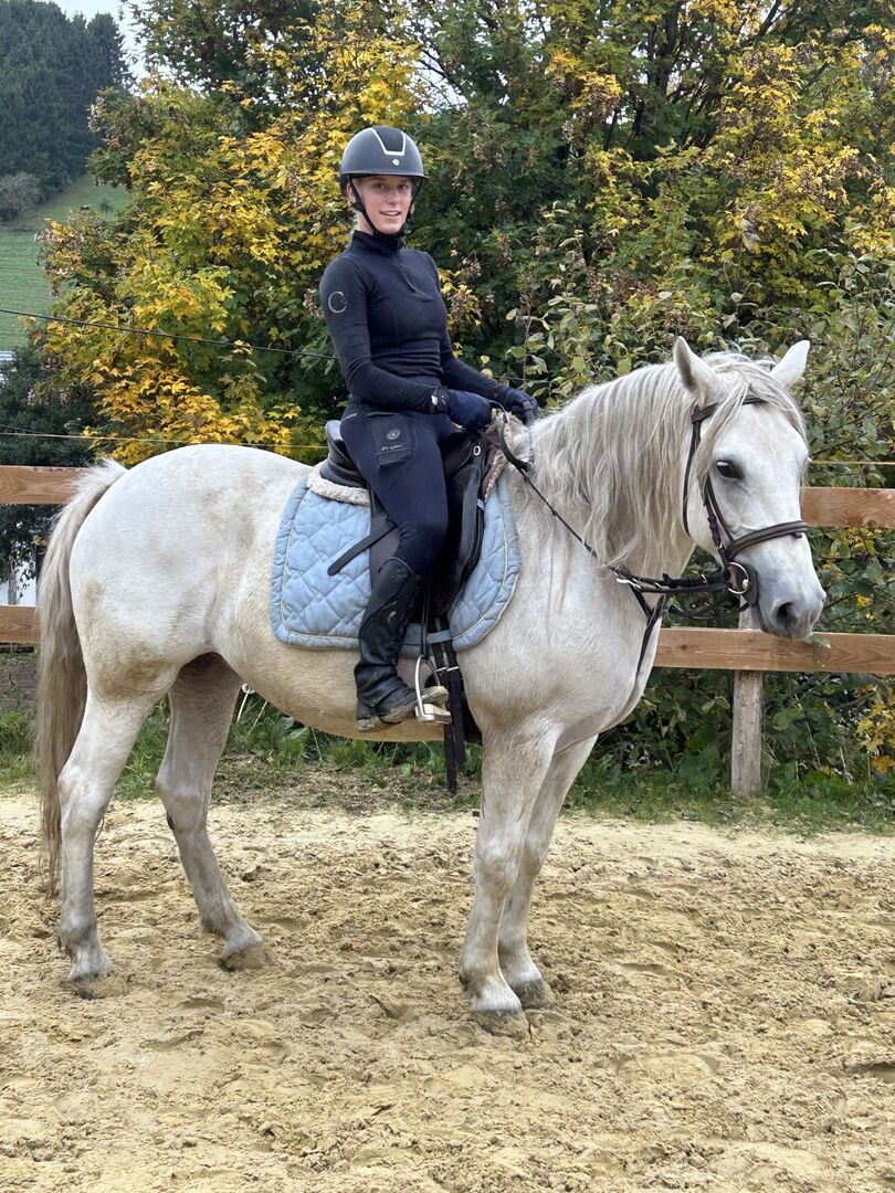 7-year-old lovely heavy warmblood mare - Slomka is a strong, friendly and lovable mare who has only been ridden and driven recreationally up to now, but would be suitable for small competitions due to her joy and enthusiasm for jumping over colorful and natural obstacles. She is fearless and very well-behaved in the field, even with beginners in the saddle, not lazy, but still rather comfortable. So far she has been driven with 2 harnesses, but 1 harness won't be a problem either, unfortunately we can't test it because the carriage driving took place before our time as owners! Slomka is robust and healthy. She gets on well in a herd of mares and is used to being kept in an open stable as well as in a box with daily access to pasture. In addition to her suitability as a leisure and family horse, Slomka would certainly also be suitable as a school horse.