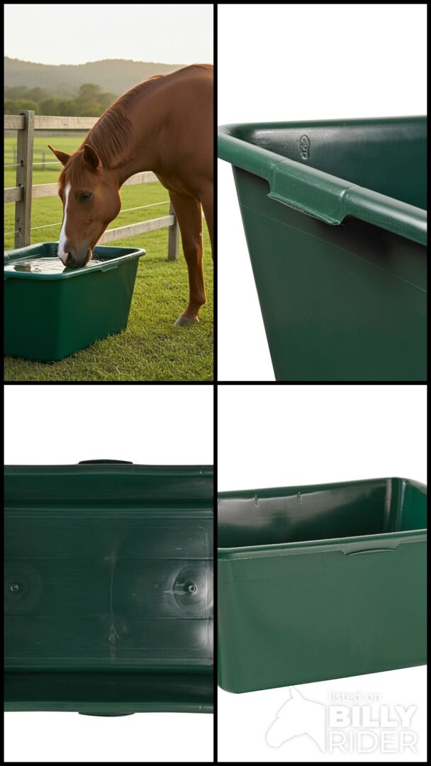 Description: Very robust plastic tub made from new plastic and food-safe. Ideal for use as a feed, water, mortar or game tray. Less algae formation due to smooth surface, no evaporation when hot. This tub is produced without plasticizers in Germany according to strict specifications.