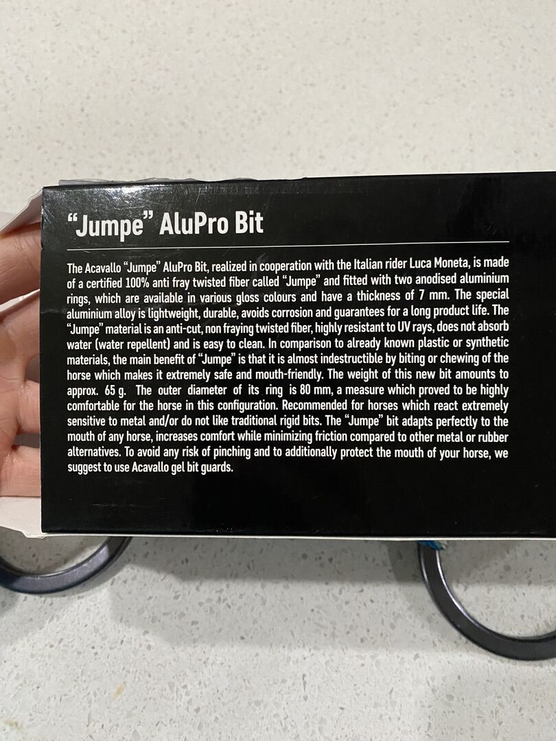 Acavallo jumpe alupro 12.5cm (5inch approx) Colour titanium Extremely light flexible bit (65g)! Used for approx 1 week, didn’t suit my horse See images for condition Comes with original box