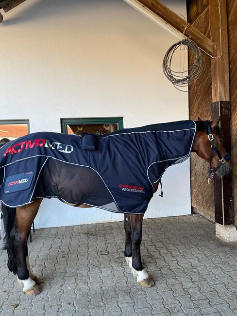 The IMPULSELINE Professional 2.0 magnetic field rug is the latest development in horse rugs. The Professional 2.0 is equipped with fourteen magnetic field coils, from the neck over the shoulder to the croup, and thus covers the horse holistically, including the shoulder and knee area. The neck section and the double-sided positioning of the coils on the left and right side of the body guarantee the optimum effect of the magnetic field technology on the entire horse's body. In addition, the IMPULSELINE Professional 2.0 magnetic field blanket has an optional integrated massage function that can be individually adjusted in terms of duration and intensity, which has an additional positive effect on the horse's relaxation and regeneration.