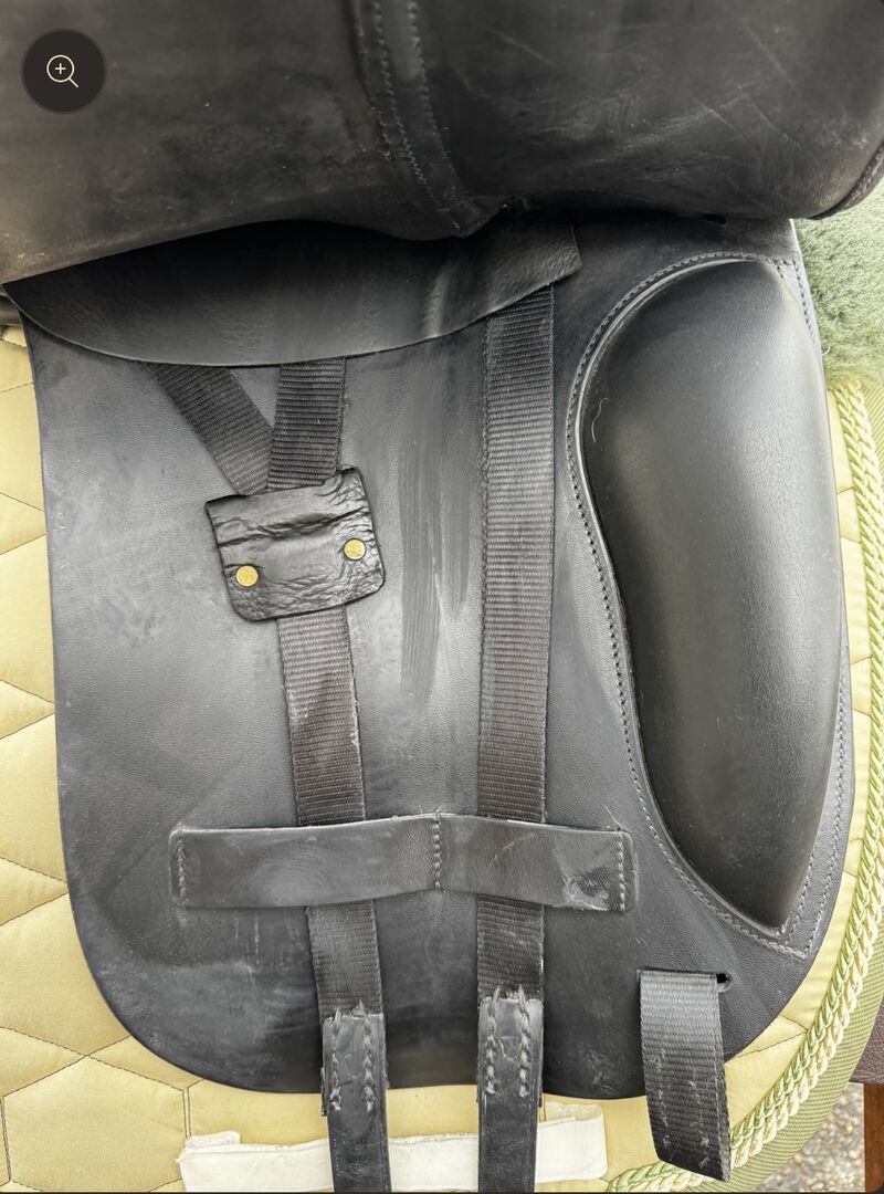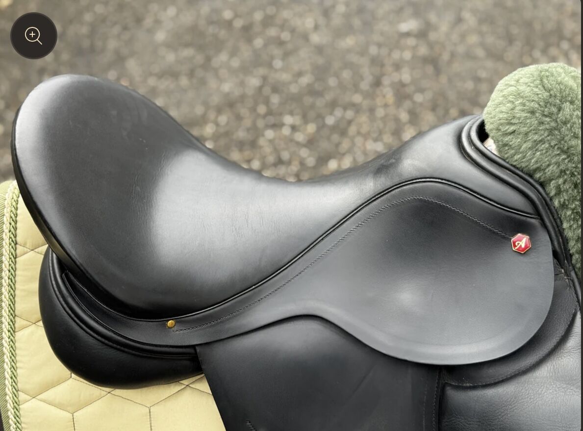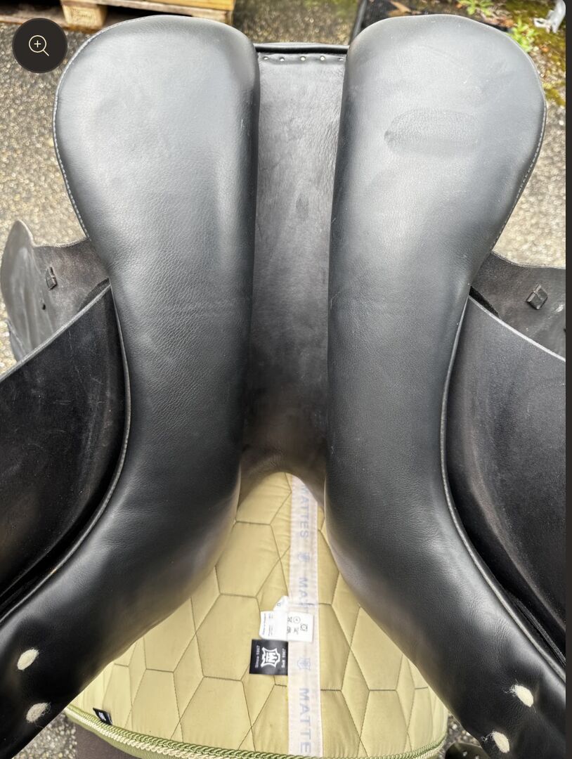 Albion SLK Adjusta Europe 17.5 inch MW LH NS 2nd hand - I am selling my Albion, which I have owned for 6 months now (August 25). He is 2nd hand with me and not ridden much, always kept dry and with saddle pads. My saddler enlarged the saddle by half a chamber in October 25. It is still possible to adjust it upwards to W. The saddle fitted my 1.75 tall warmblood very well, with medium withers and a straight back (slight curve). I have attached a photo of the horse's back.