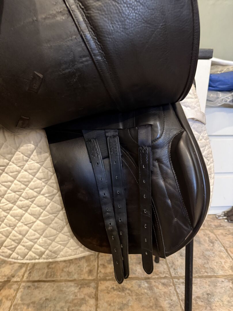 Lovely Albion VSD saddle in brown leather, ideal for general riding, hacking and flatwork. • 17” seat • XW gullet fitted at the moment • Stamped clearly under the flap • Adjustable gullet • Sound tree • Girth straps in good, usable condition