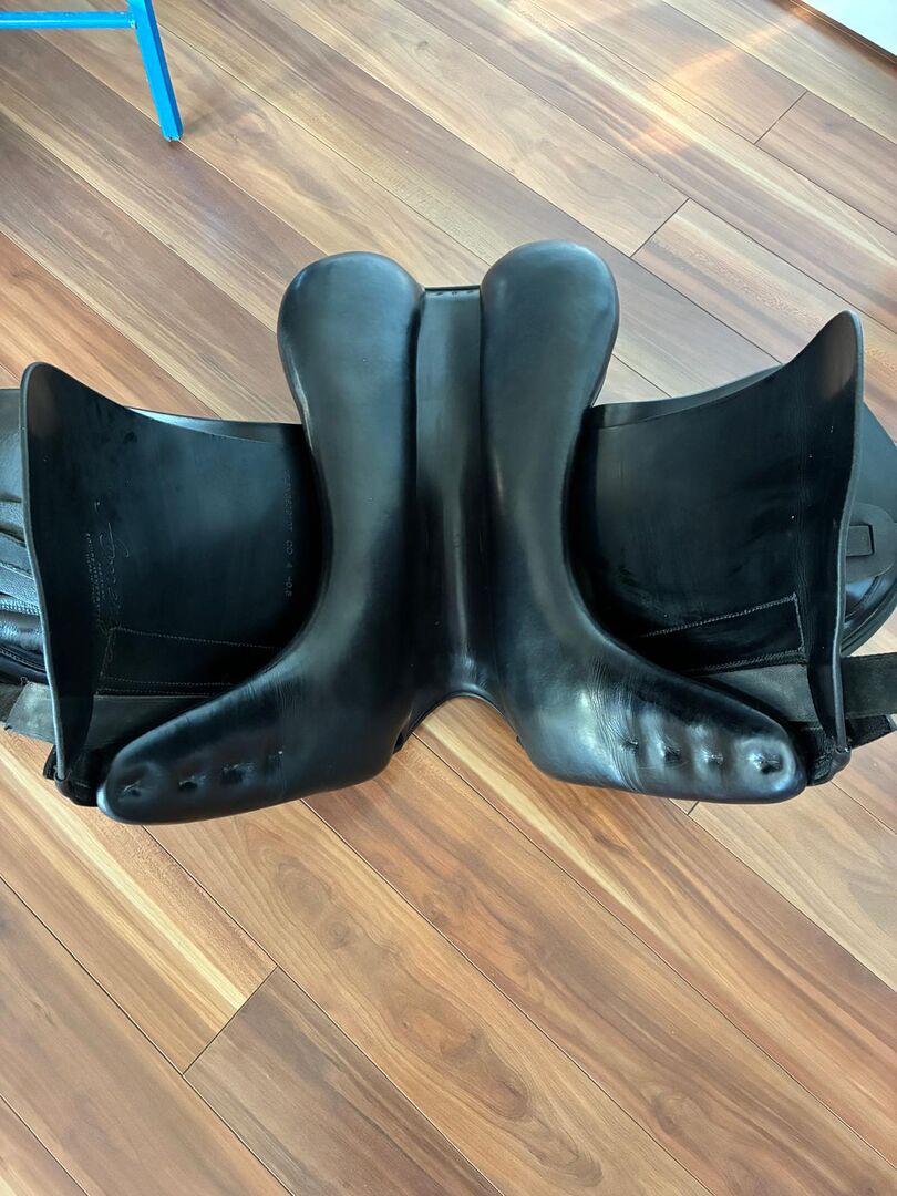 Information about the saddle: Brand: Amerigo Dressage saddle Seat size: 17.5 inches Chamber cold adjustable by the saddler Condition: very well maintained New price: 4.000 € Price: 700 €
