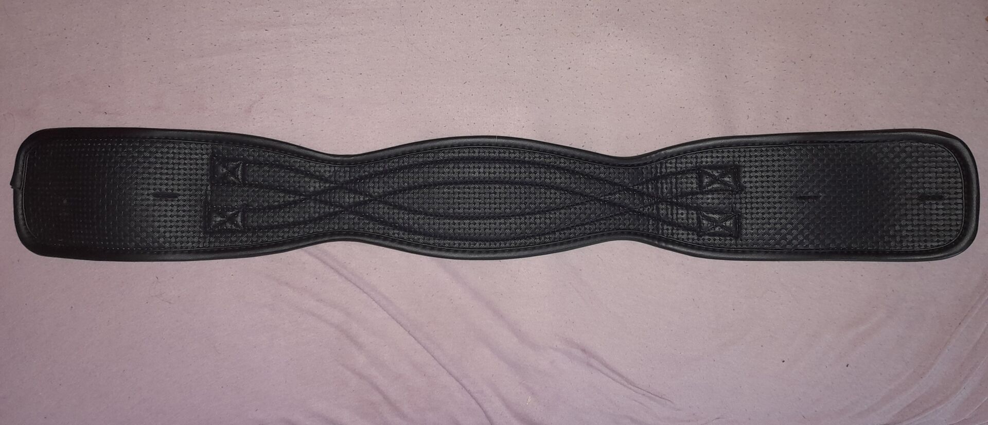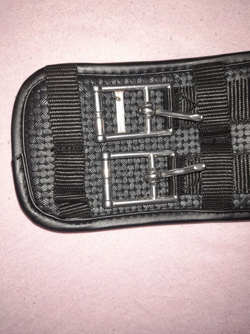 Anatomical short girth 70cm - Sell a short girth 70cm in black, this was only to try on the pony but is unfortunately too long. It is an easy-care and dirt-repellent anatomical short girth made of PVC soft grid foam and one-sided elastic inserts. With roller buckles. Belt width is 12 cm.