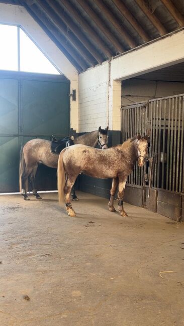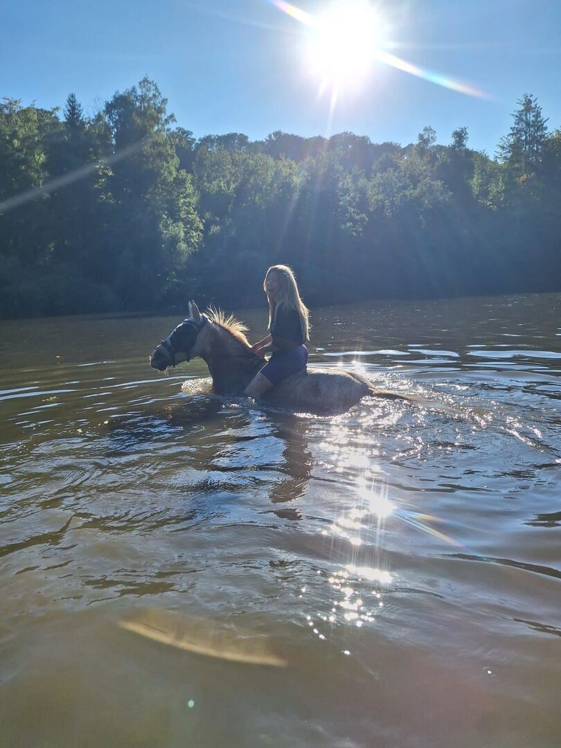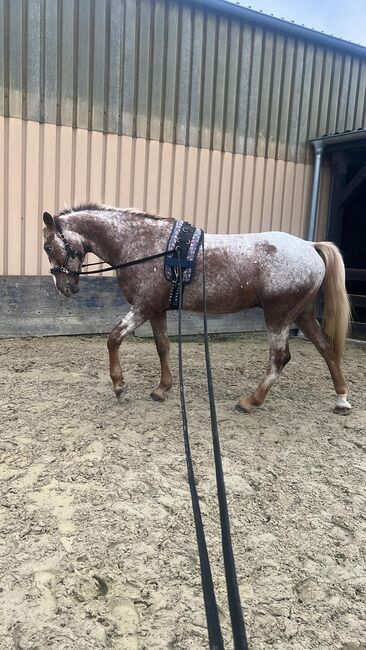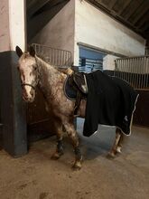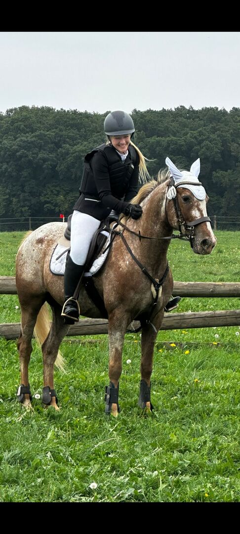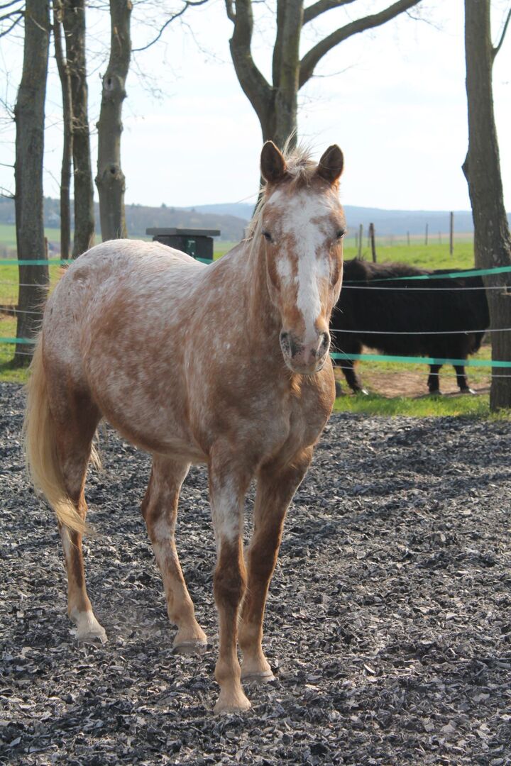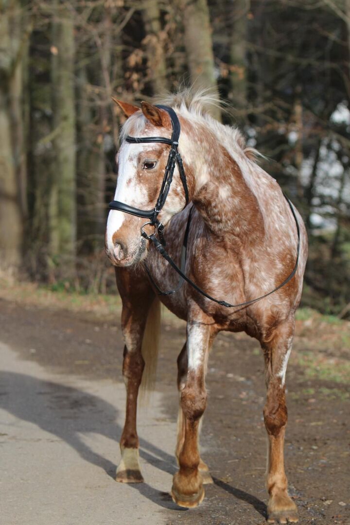 Appaloosa gelding - Azuro is an absolute dream pony. He needs a safe person who works without pressure. If he feels safe with his human, he will go through thick and thin with you. He knows everything a horse should know. He is not untalented in jumping or dressage but is not a competition horse. With us, he was mainly ridden cross-country. He always wants to please in ground work. He is affectionate and cuddly and comes to his owner when called. He loves children but should not be ridden by insecure children. He is sensitive and is easily unsettled when his owner becomes nervous or anxious. He reflects this in the same way. Nevertheless, he is always respectful and kind when handled. In the herd he is low in rank and avoids arguments. With the right horse partner he is still very playful. More pictures and videos are available if you are seriously interested. A new Prestige saddle plus matching bridle can also be purchased.