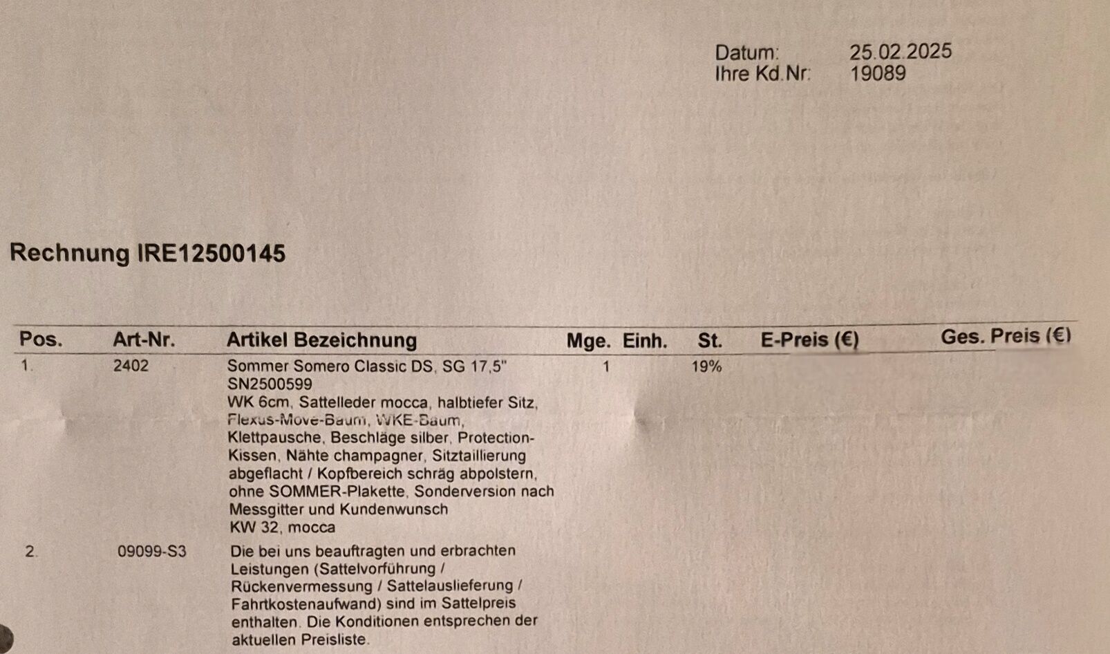 As good as new! Sommer Somero saddle DS Classic mocha/brown 17.5 inch