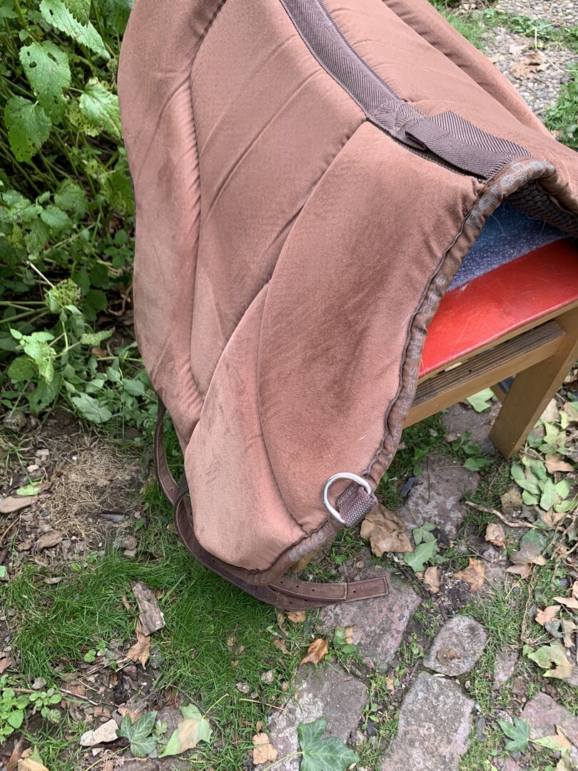 Barefoot "ride-on-pad" and sheepskin pad with knee rolls. - Little used Barefoot riding pad in good condition. Comes with a Barefoot lambskin pad with knee rolls for a secure fit and double pads for V-girthing (4 pieces). I am happy to answer questions about the pad and "riders who care". New price pad € 199.00, sheepskin pad € 165.00, replacement pads V-girth € 50.00.