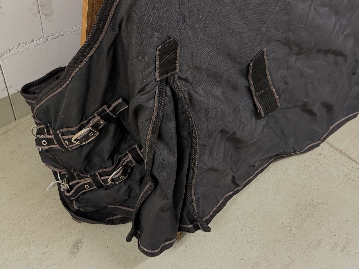 Bargain <3 Warm outdoor winter blanket, waterproof, cleaned, - The next winter is sure to come, maybe with this bargain? Outdoor winter blanket, waterproof, cleaned, used in good condition. Black. Only used 1 winter. 220 gr 145 cm, Just look at the pictures (tail protection, folds, girth, lots of buckles,...) Professionally cleaned and small patch on the front. NP was 99€ Smoke free household, stored dry in the cellar.
