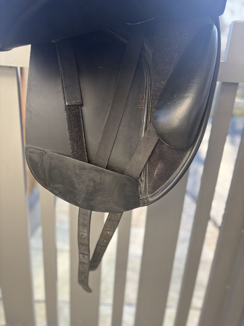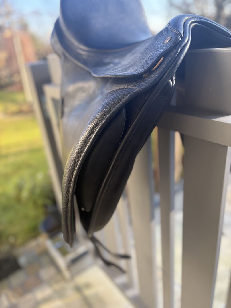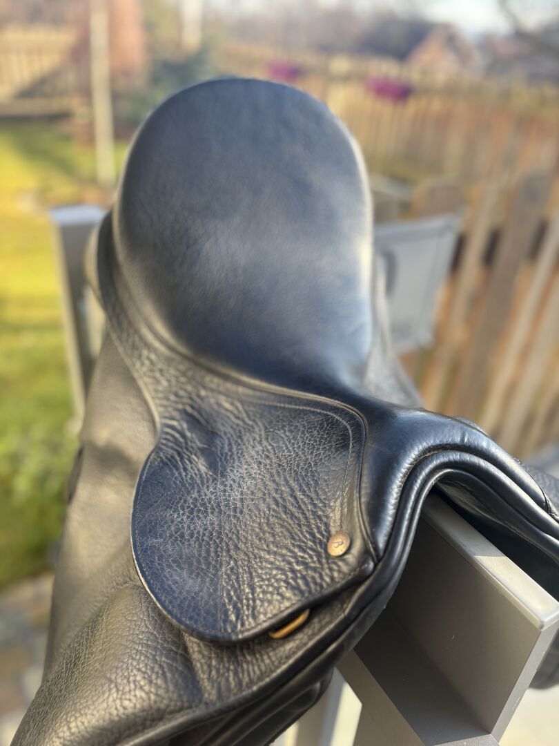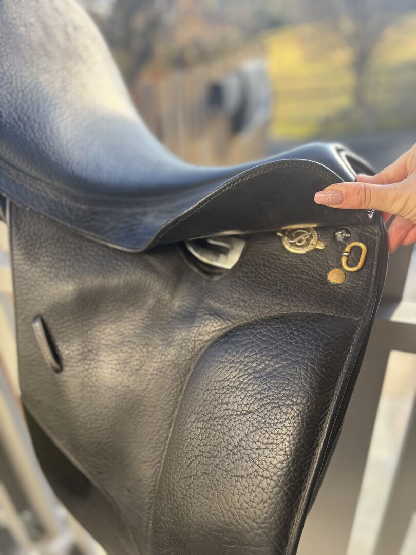 Bates Isabell Werth dressage saddle - 16,5" / 42cm - For sale high-quality Bates Australia Isabell Werth dressage saddle with EASY-CHANGE gullet system (red gullet plate fitted) and CAIR air panels.