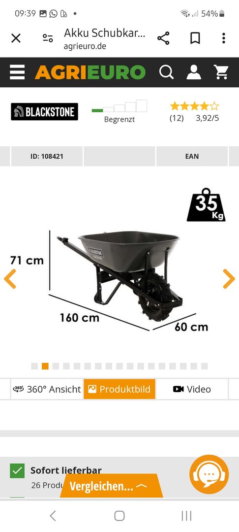 Battery wheelbarrow Blackstone Electric large with charger - Selling my electric wheelbarrow. Bought it last year for over 500€. Little used. Of course I would still clean it. With battery charger and we have added wheels at the back. It has a nice big trough for loading. Unfortunately, the throttle was broken, but my father made me a replacement. Everything works perfectly, it handles well, even when going uphill. Please only pick up (delivery possible within a radius of Selb/ Wunsiedel/ Marktredwitz) No shipping.