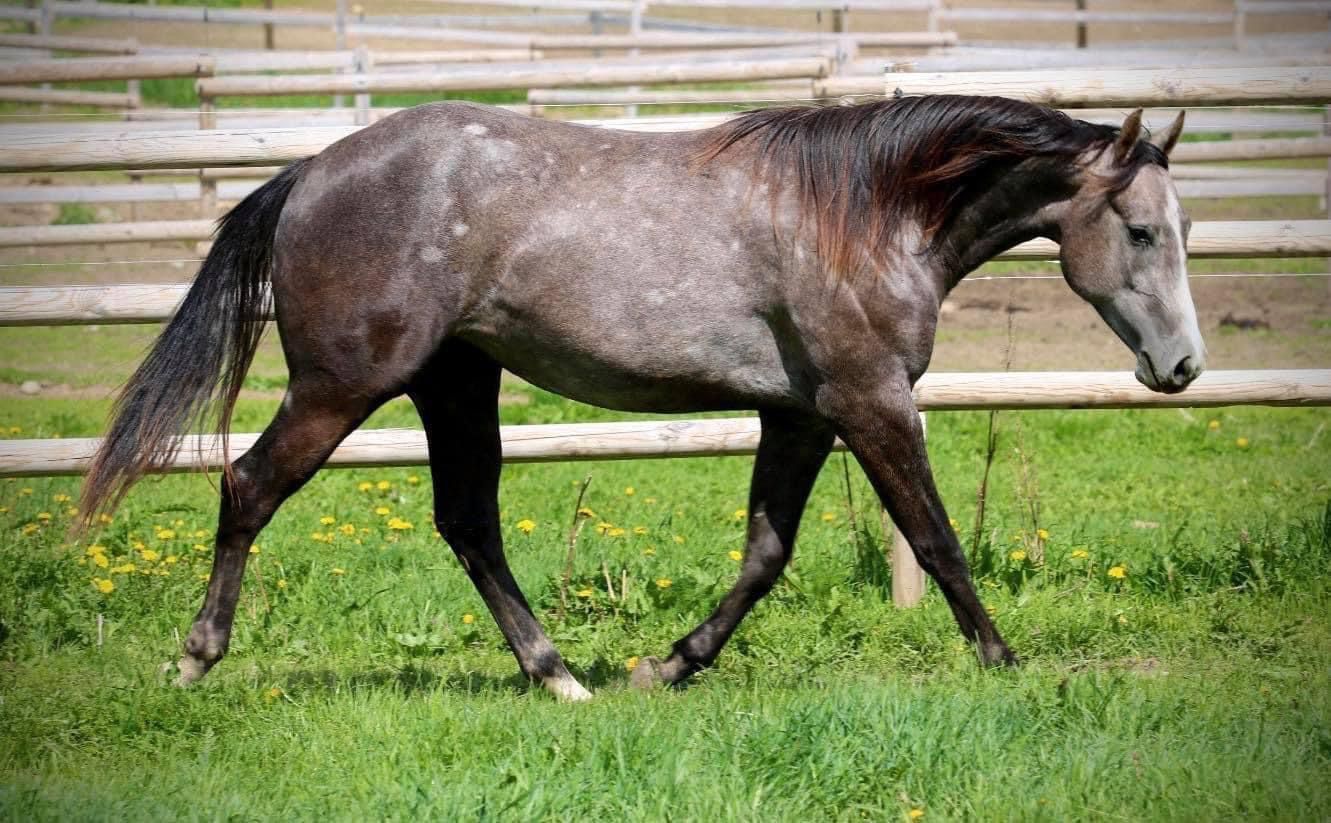 beautiful, big Quarter Horse mare with top pedigree - This beautiful Gallo Del Cielo daughter is looking for a new home as a broodmare. She was born in 2018 and has a height of 150 cm. Rosi is very creamy and has a correct conformation with good muscling. She is sound and 5-panel n/n. The mare has a lovely character, is totally uncomplicated and well-behaved. Has been in training for 4 months. Has unfortunately developed a harness compulsion in training. The mare had a great, very social colt in gray by the QH stallion Saratoga Whiz in 2022. Is covered by Colonel Lone Guns, a Gunner son. Should a filly come out of this mating, there must be a possibility to buy her back. Rosi is a loving dam who took immediately and foaled without complications. She is a daughter of the $4 million QH stallion Gallo Del Cielo (Rooster). Rosi's dam is a Hes A Steppin Jac daughter out of Enterwinder (Be Aech Enterprise). So first class pedigree and therefore very interesting for breeding. With the transport can be helped with pleasure.