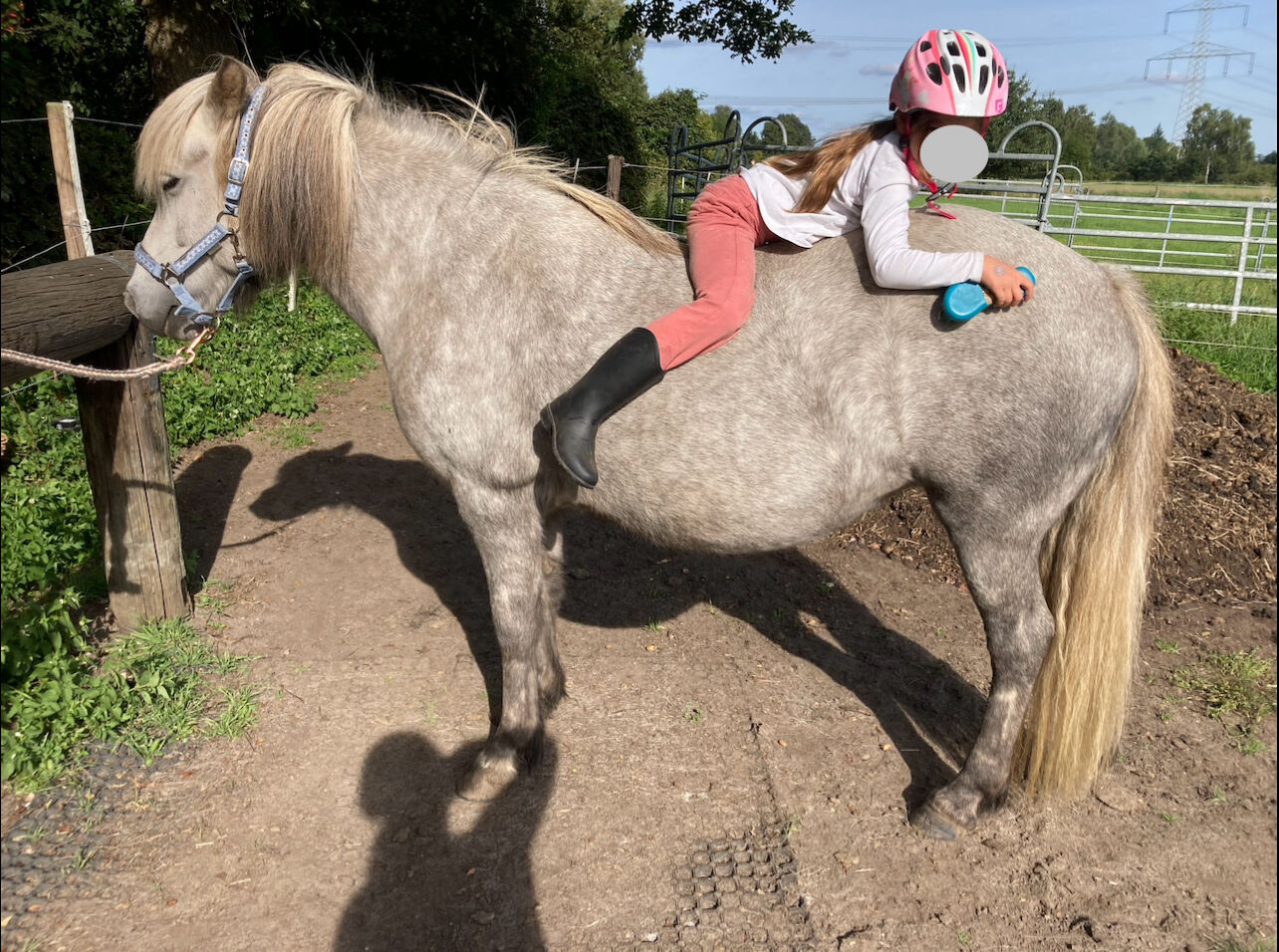 This pretty lady is a real treasure to handle. She always remains calm and relaxed when children are around her for hours, grooming her or doing gymnastics on her. As I am heavily pregnant myself, she is currently being ridden regularly by children with riding experience. She is also often ridden by children with no riding experience, who are taught their first exercises on the horse.