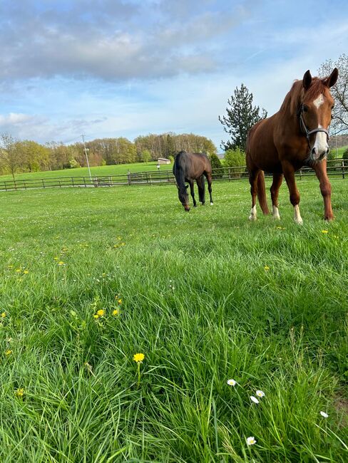 Beautiful mare with excellent GGA is looking for a new leisure partner - Samira is very people-oriented, extremely uncomplicated and has an honest character. As a riding horse she was easy to ride, had 3 very good basic gaits and was very willing to work. She already had three foals, two of which are still at our yard. One of these mares was awarded a state premium.