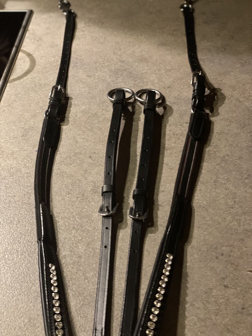 Beautiful martingale with glittering stones - Hello, I sell my new breastplate because it does not fit my mare. It was once for fitting on the horse and is in very good condition ( no stones missing, the buckles are not scratched and the rubber is not worn out). The leather is not rock hard and can be bent.
