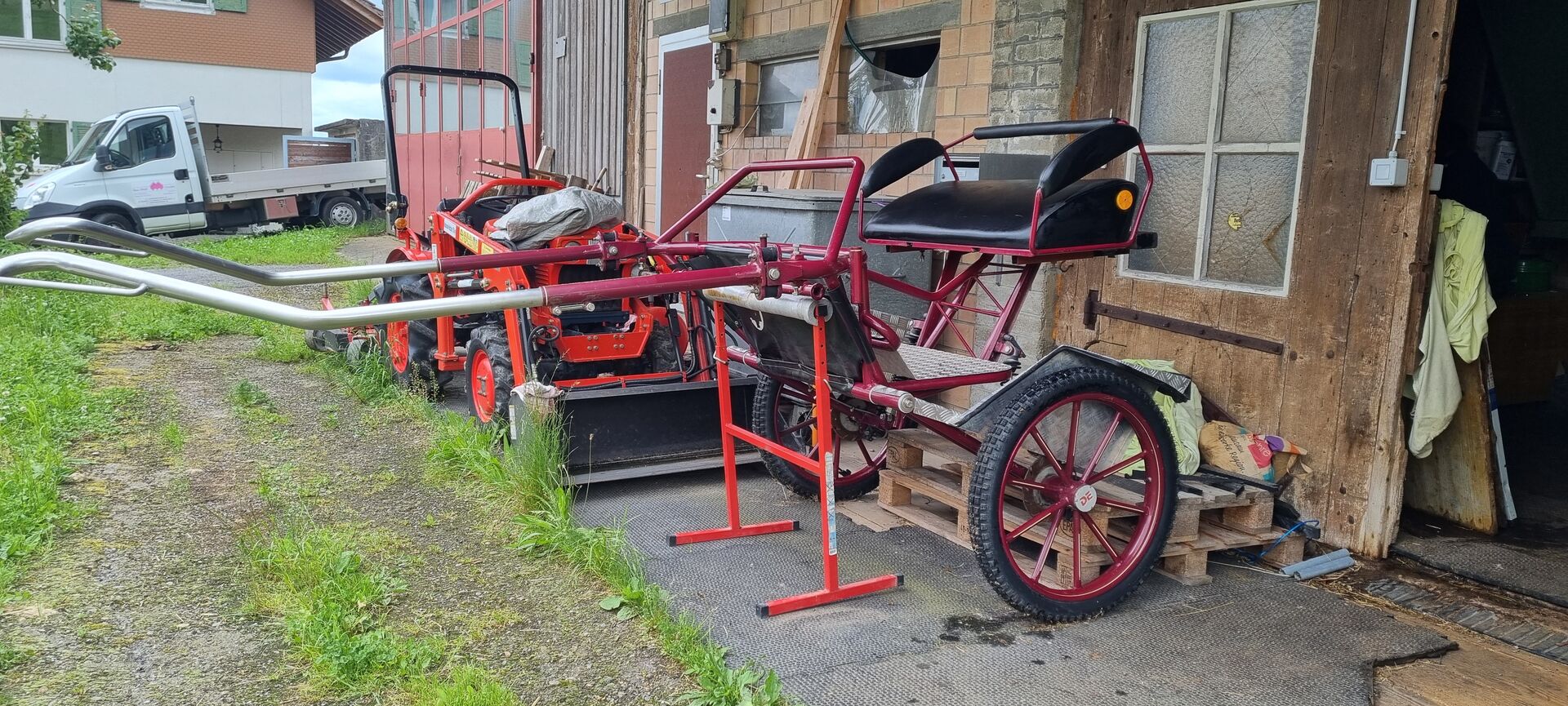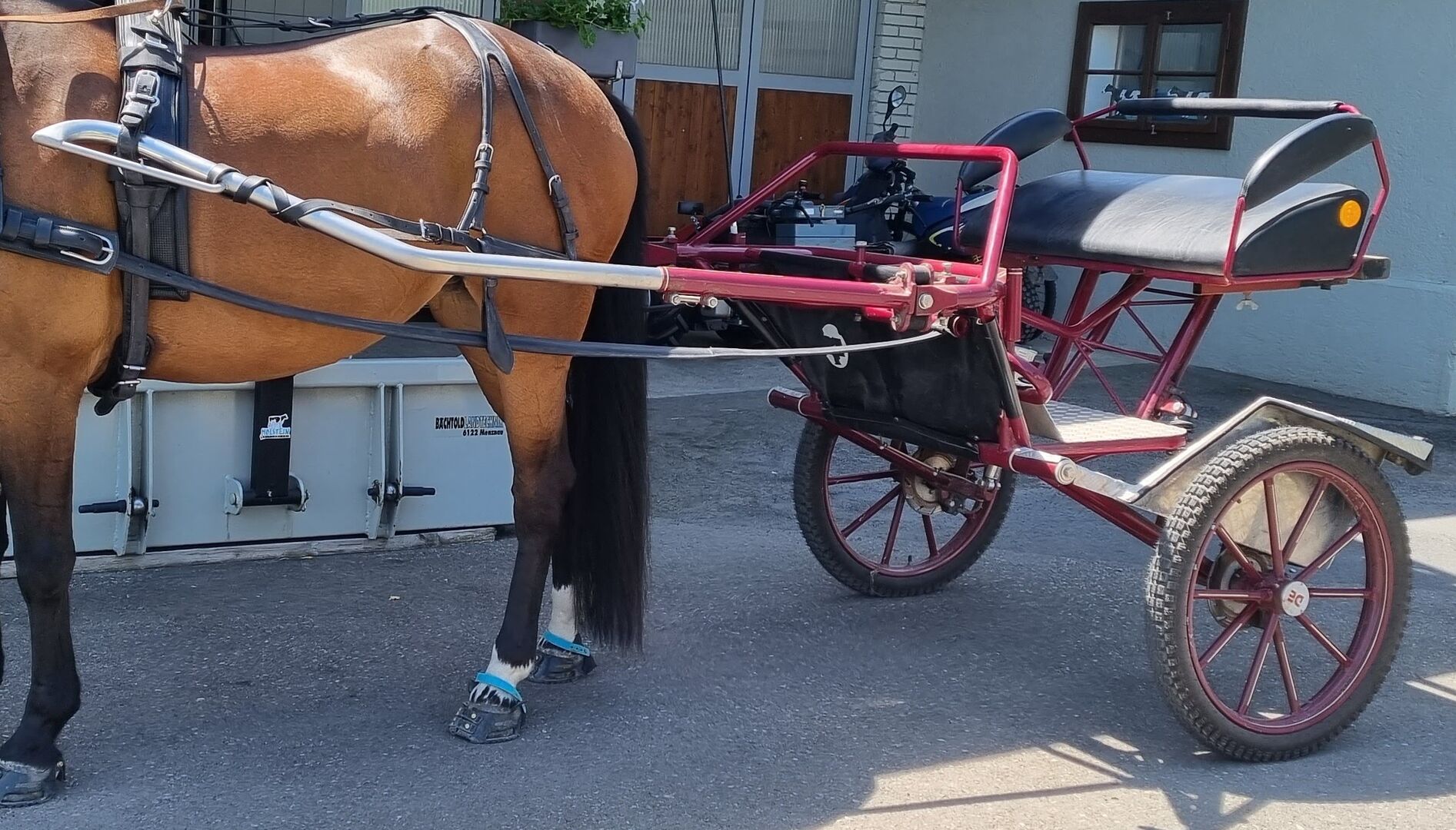 Bequeme und Stable Gig / Einachser Kutsche - Great "Big-Swing" carriage by Delvos Metallbau GmbH for sale. Was pulled by a Freiberger mare (height at withers approx. 154 cm).