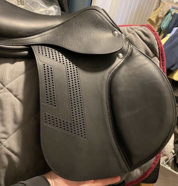 Barely used black showjumping saddle with semi flat seat. Fantastic saddle for a tall rider with long legs.