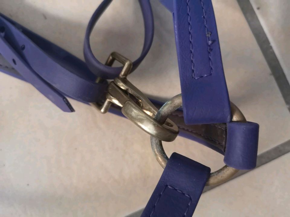 Biothane hunting forelock from Tajara Horseware - With martingale fork - this was never used by me. Vordezeug is with curved stitching on the overlay. Some of the metal parts are a little tarnished, otherwise good condition. Exact details are in the last picture.