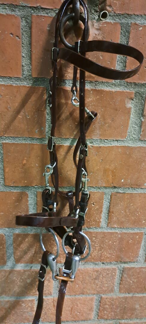 Biothane snaffle/halter trail bridle - Gladly used trail riding snaffle Small COB/Arabian/pony Bit can be completely unhooked so that only one halter remains on the horse Reins reinforced with rubber, which is now somewhat worn out