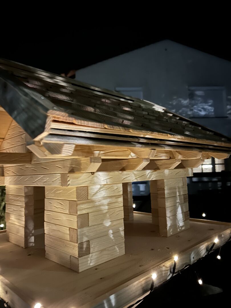 I am offering a lovingly handcrafted bird feeder in a rustic log cabin style.