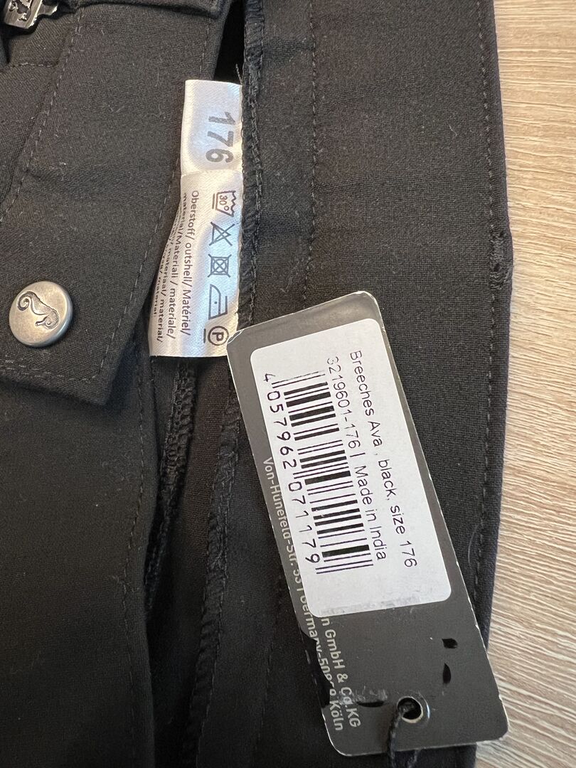 Black breeches with grip - I am selling a pair of black breeches. They have grip full seat and sequins on the front and back pockets. The breeches are new and have never been worn. They are a size 176 cm.