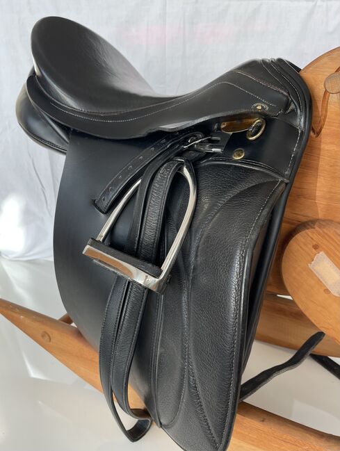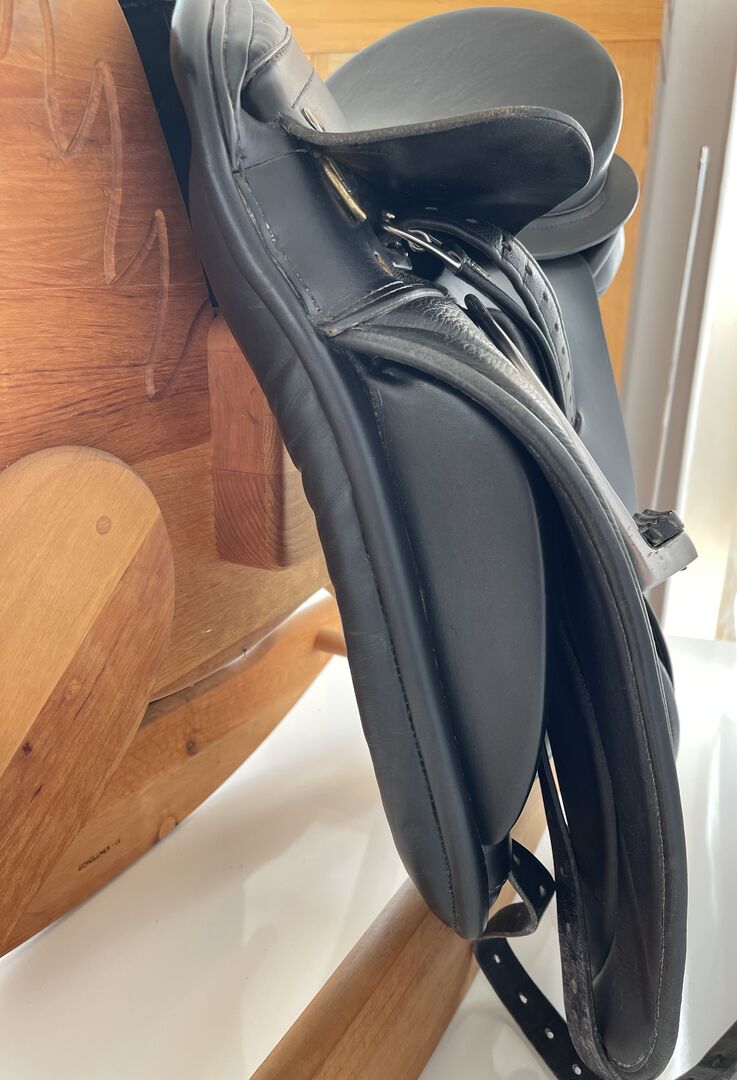 Info according to the manufacturer: medium chamber width (M = 30 cm) Wedge 1 (height of the padding at the back) seat size 43 cm = 16.5 inch girth front, saddle flaps 4 cm longer