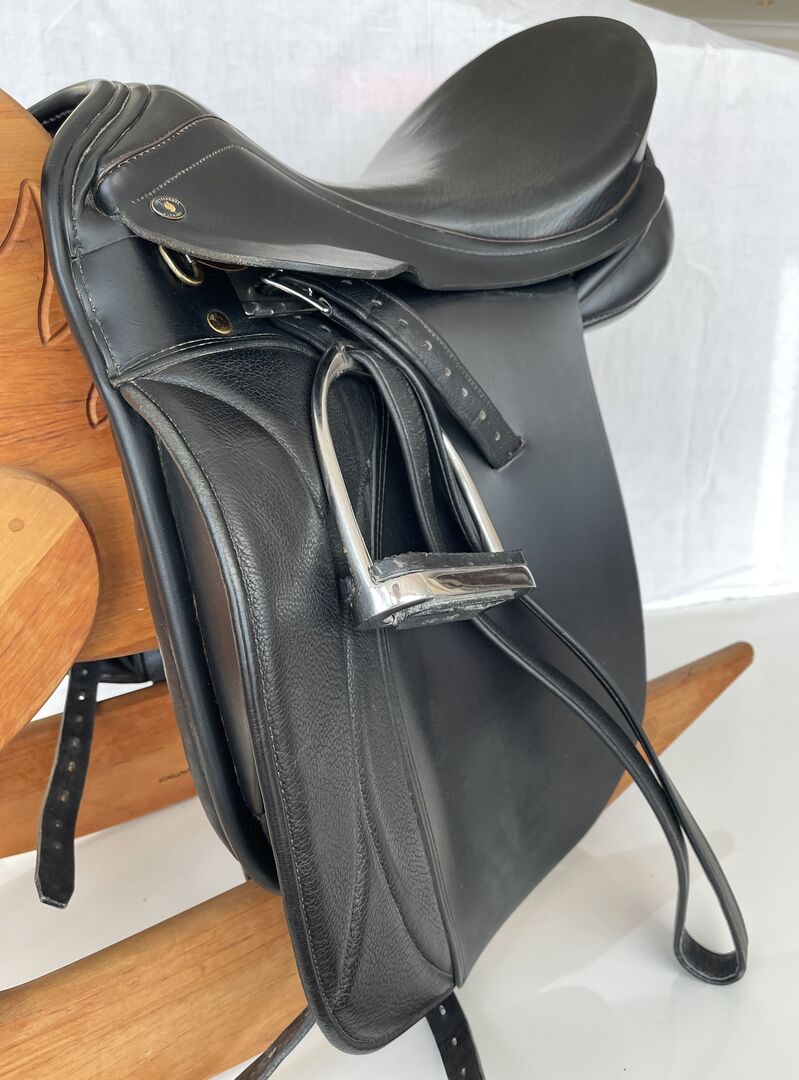 Black Eichhorn Advantage dressage saddle chamber 28 - Eichhorn Sattelprofi dressage saddle Advantage Color: black with brown details Measured chamber width: 28