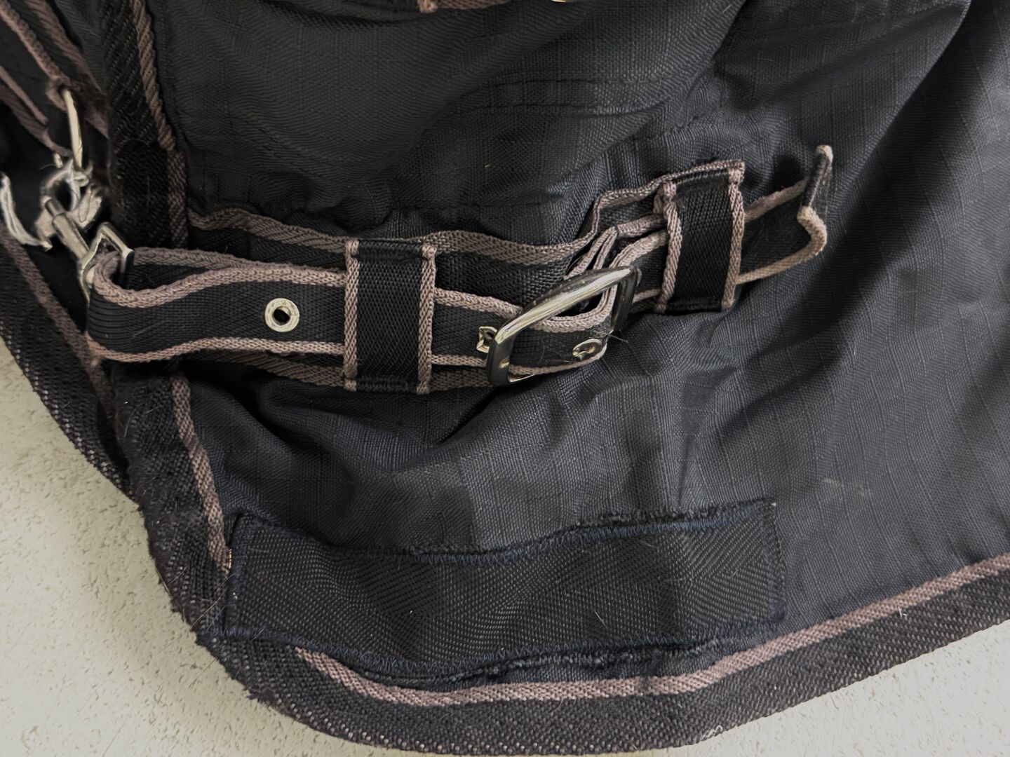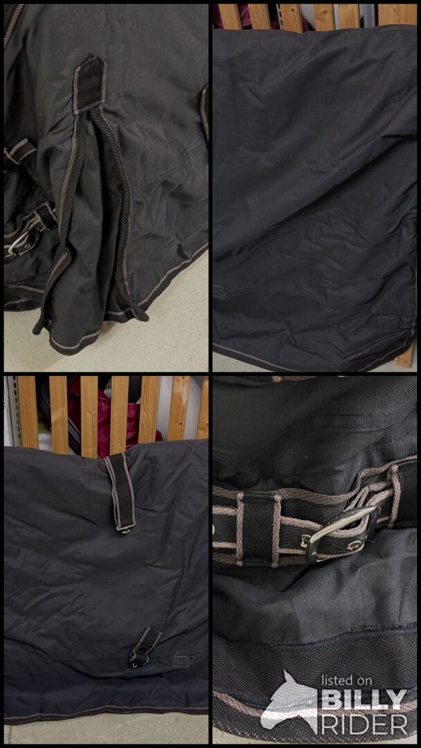 The rug has the following features: - Waterproof - 200g filling for cold days - Reinforcements at the withers - Front buckles adjustable in size and also with hooks for easy opening - Gusset and leg loops - Professionally cleaned etc.
