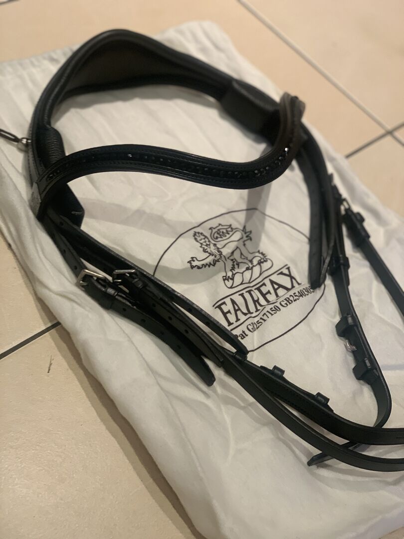 Note. For size explanation visit Fairfax website Bridle and nose band are both LARGE. Never used as sadly bought and an injury meant we couldn’t do dressage anymore. Fairfax bridles are designed so they can be interchanged. Known for their anatomical research and is designed specifically to improve your horses way of going. For more information on Fairfax products products. Visit www.Fairfaxsaddles.com
