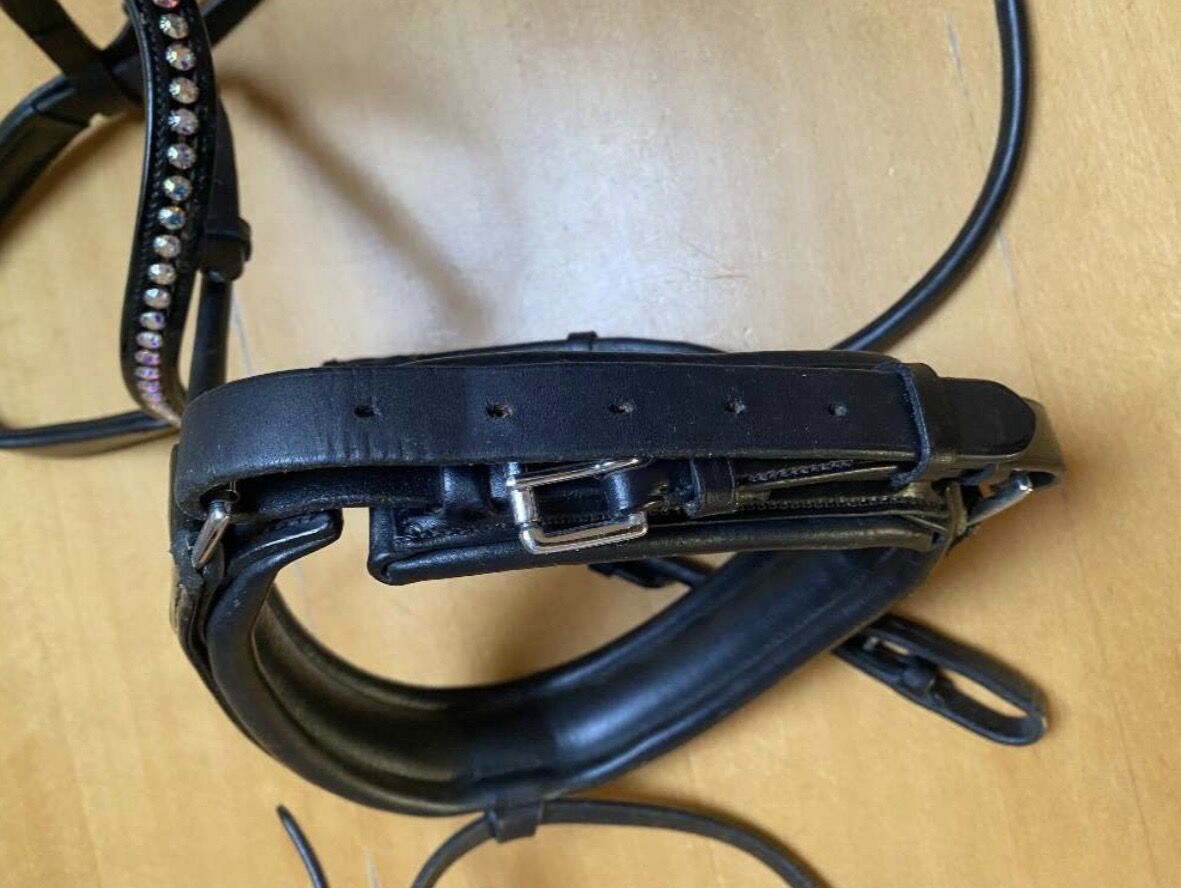 Ergonomisch geformtes Genickstück, gepolsterter Lacknasenriemen, inkl. Zügel