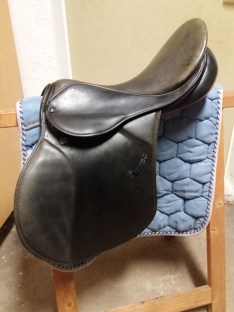 Branded riding saddle - Stübben Romanus VVS 17,5", 30 girth/chamber - Anyone who appreciates good quality will be very happy with the Stübben Romanus. It is an eventing saddle with a focus on jumping. Color black with brown. Overall, however, it is a great all-rounder that is very comfortable and always gives a secure feeling. The saddle has a 30" chamber and a 17.5" seat. The girth straps are all still in perfect condition. The same applies to the saddle tree. Of course, the saddle was always stored dry and regularly maintained, but also has traces of use.