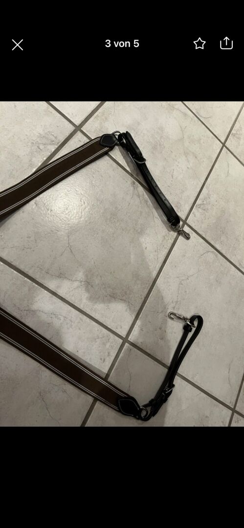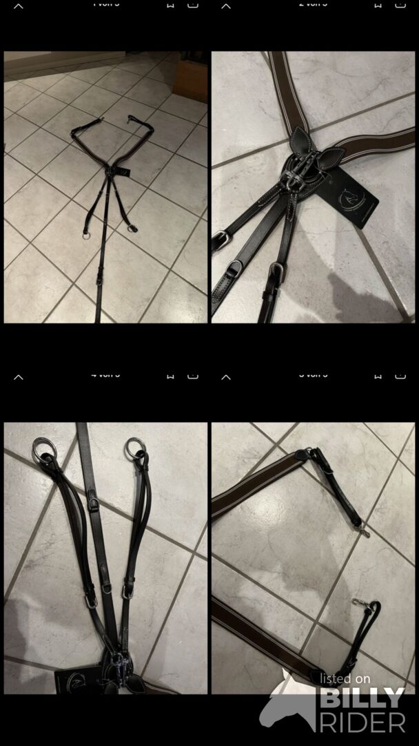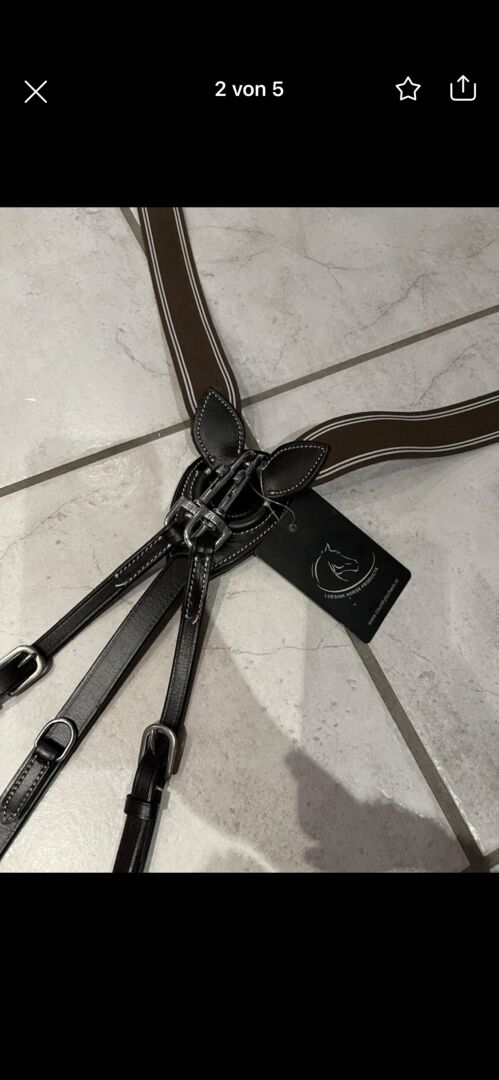 Breastplate brown - Hello, I sell here a WB breastplate. It is in mint condition, as it does not fit my horse nearly (horse 1.80cm). The color is brown.