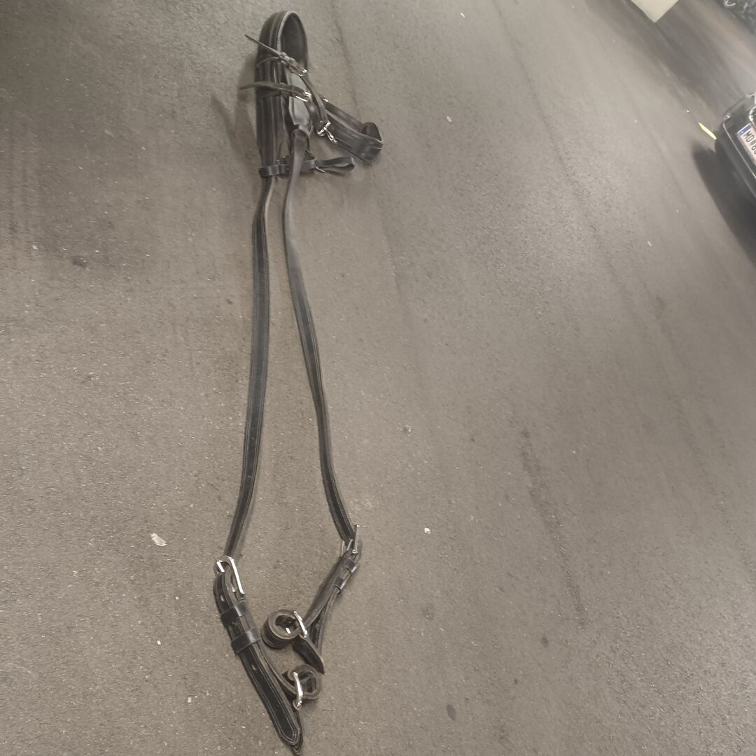 Breastplate with fixed tension cords XXL - Breastplate with fixed drawstrings, size coldblood, leather, black, used but very good condition, no tears etc.