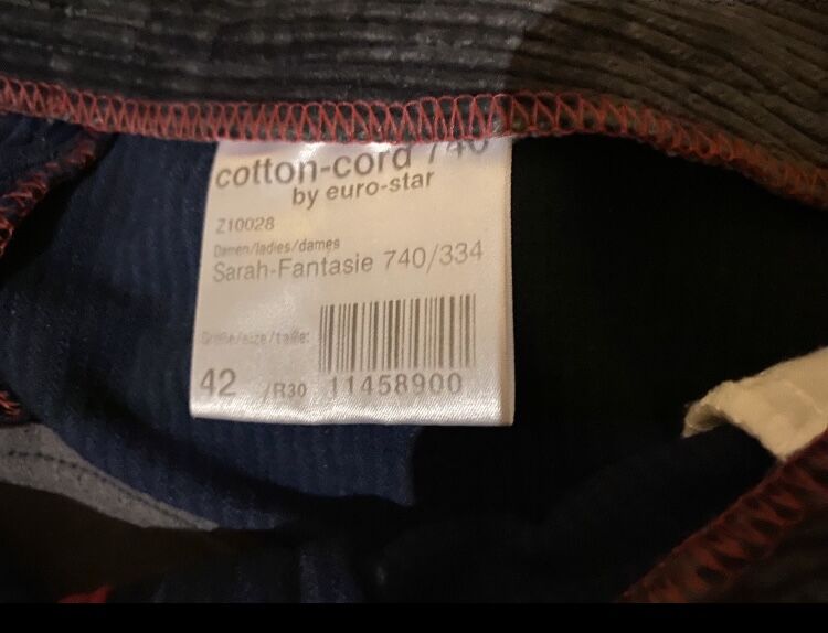 Breeches size 42 - Beautiful, very well-preserved dark blue boot breeches in soft corduroy with full seat and high waistband from euro-Star.