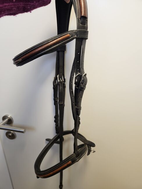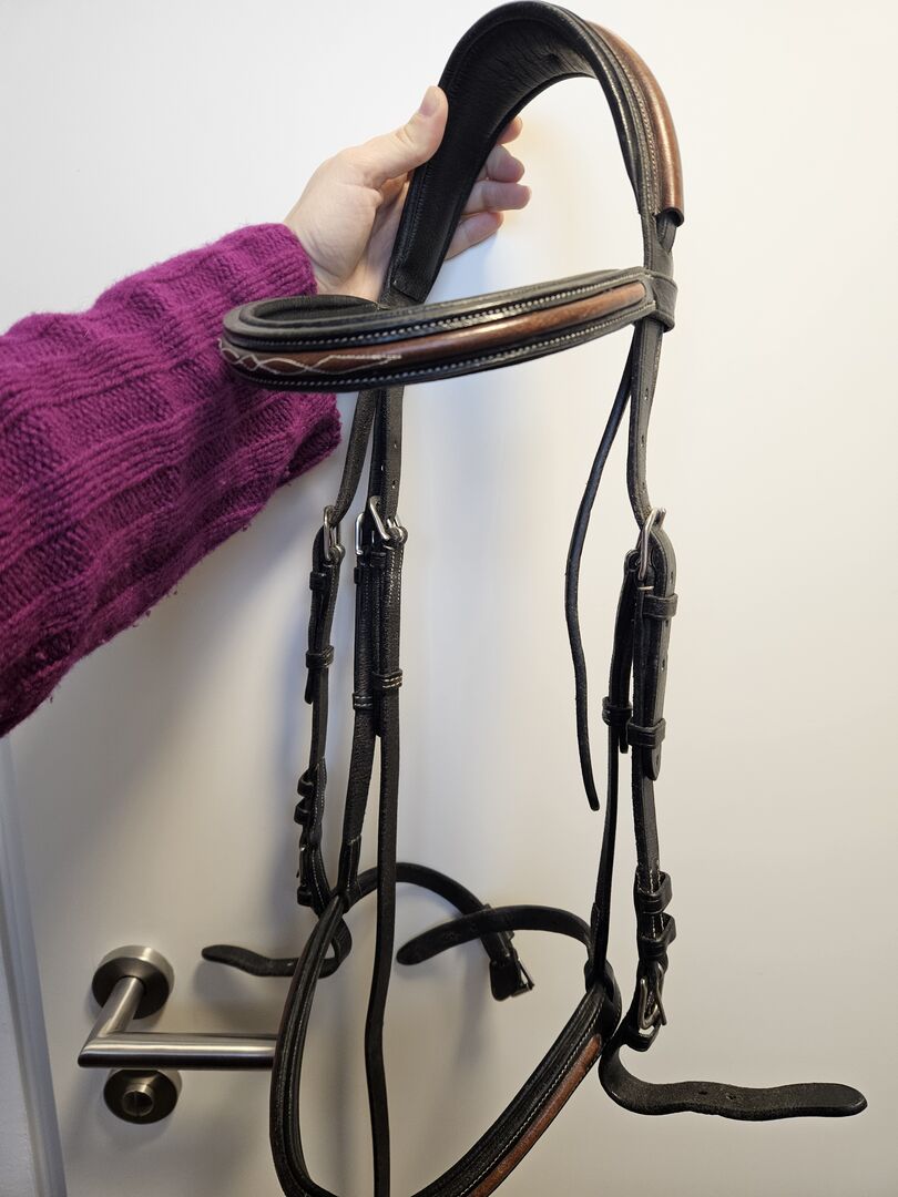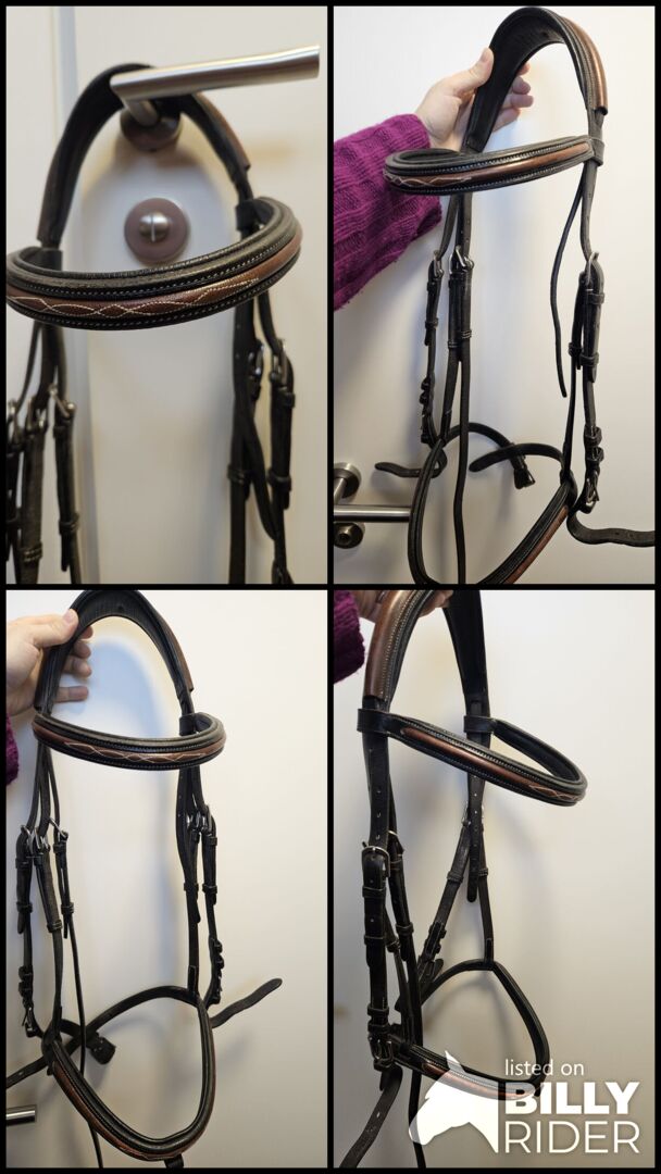 Bridle brown black - Bridle in black with brown accents. Well cared for and complete. Size Warmblood/Full