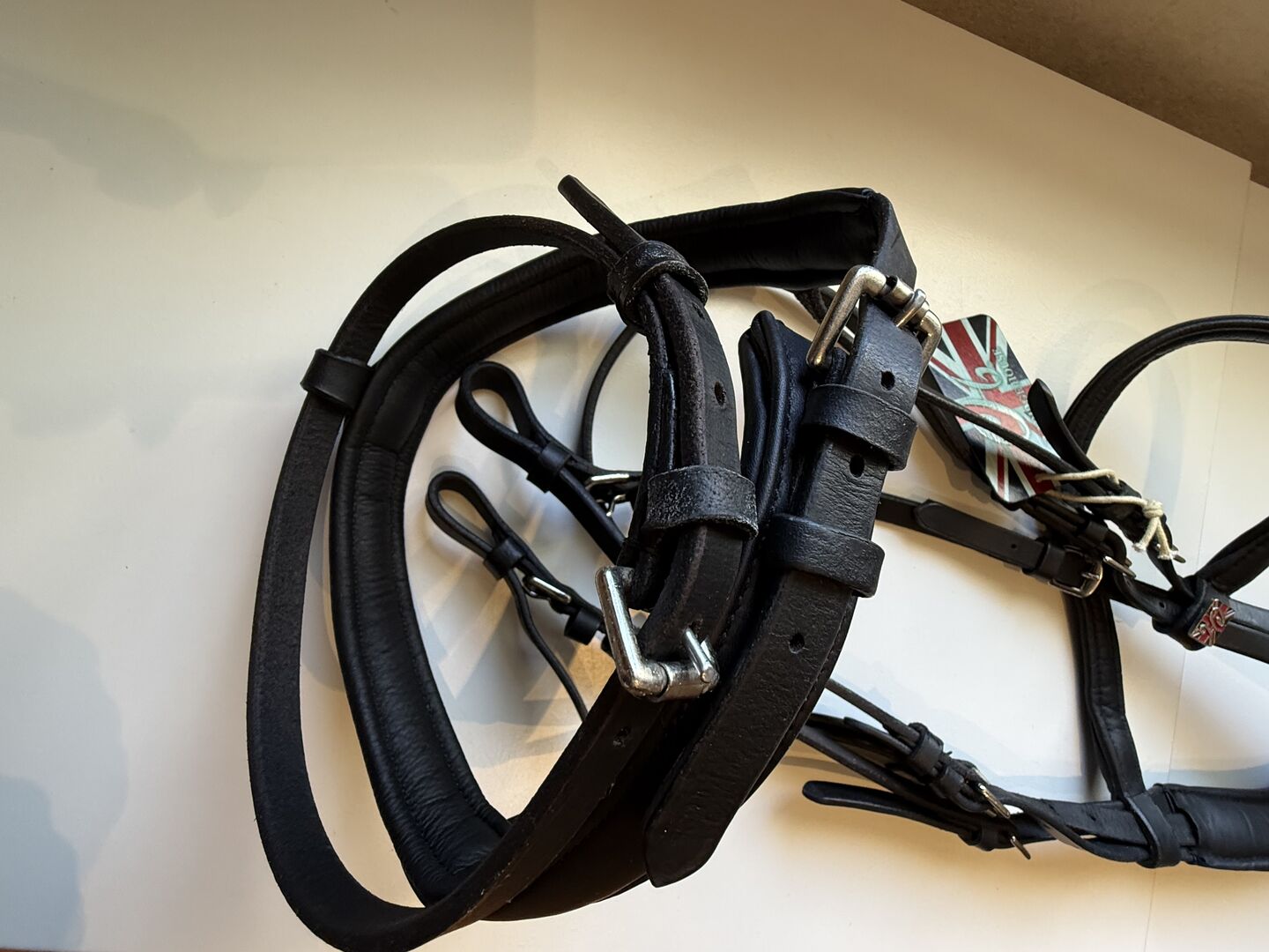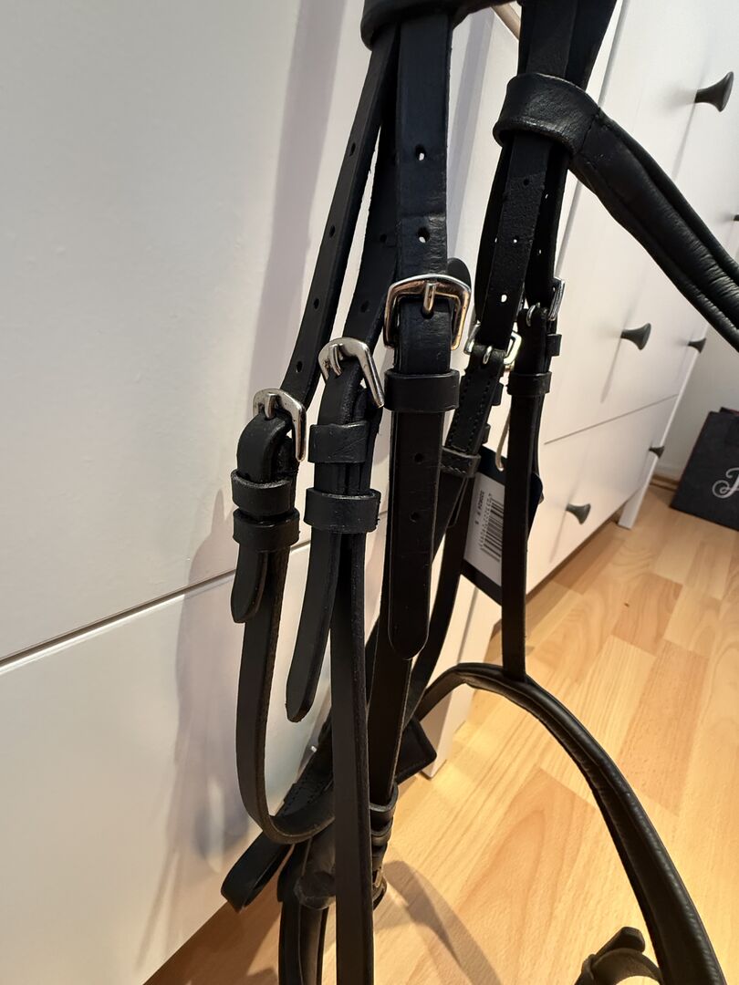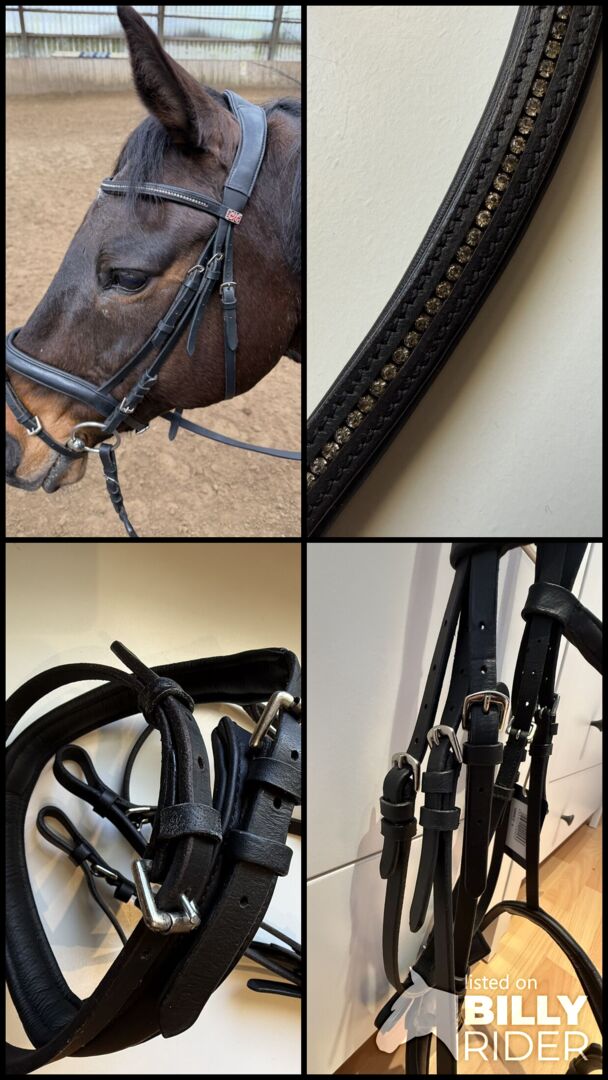 ▪️Claridge House Soft Comfort NP 89,90€ ▪️Englisch combined / black ▪️anatomisches Headpiece ▪️inkl. Web reins NP 15,90€ ▪️inkl. Mix & Match PRO glitter leather browband NP 19,90€ ▪️inkl. SILK STEEL Water snaffle single broken 14,5 / thickness 18 mm NP 22,90€