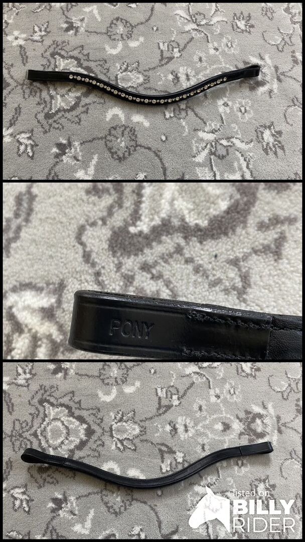 Browband Pony - The browband is unused. Has no damage/scratches and all the stones are still on it. It has black leather and white stones.