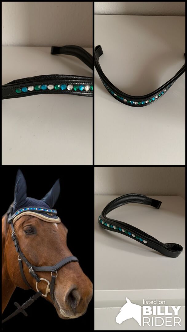 Browband Wave with rhinestones - Bought as a replacement and was never in use. Therefore, actually new, was only in the locker with the other horse stuff. It fit my Polish heavy warmblood perfectly. You photo, but this is the same browband with different colors.